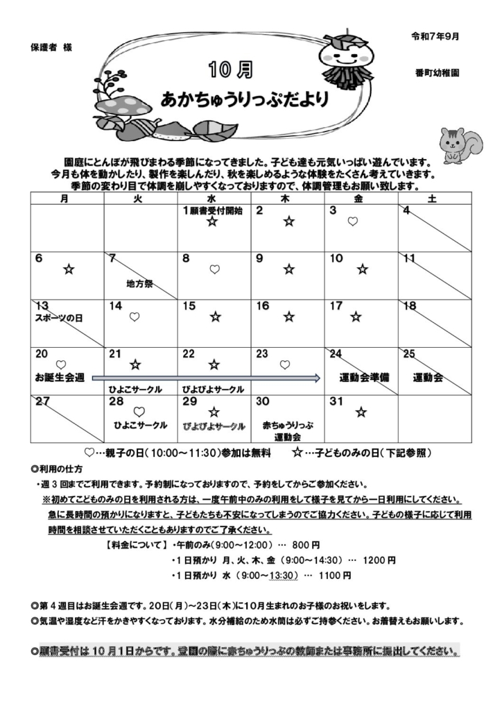 ※ 当初お配りしたものと一部、「親子の日」「子どものみの日」が