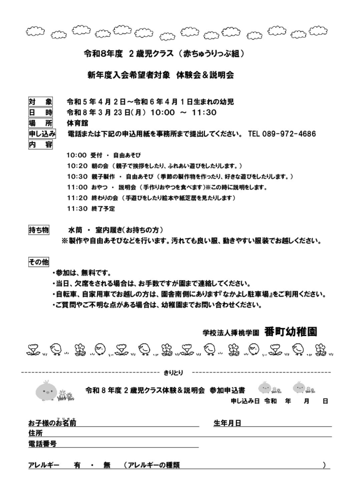 令和8年度 赤ちゅうりっぷ組体験会🌹