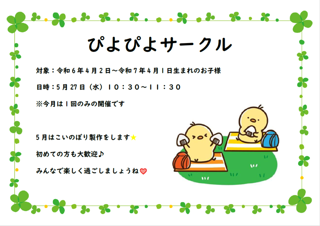ぴよぴよサークルのご予約はこちらから⇩