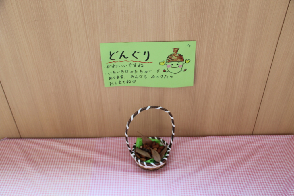 季節を感じるものをよく展示しているピロティから年少組さんのお部屋へ行く通路🛴🛴🛴
