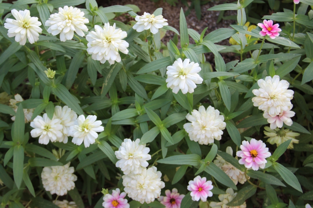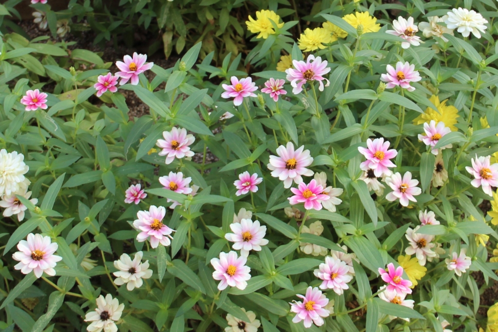 校舎の東側通路のヒャクニチソウ(百日もの長い間、花を咲かせることからこの名前がついているそうです)