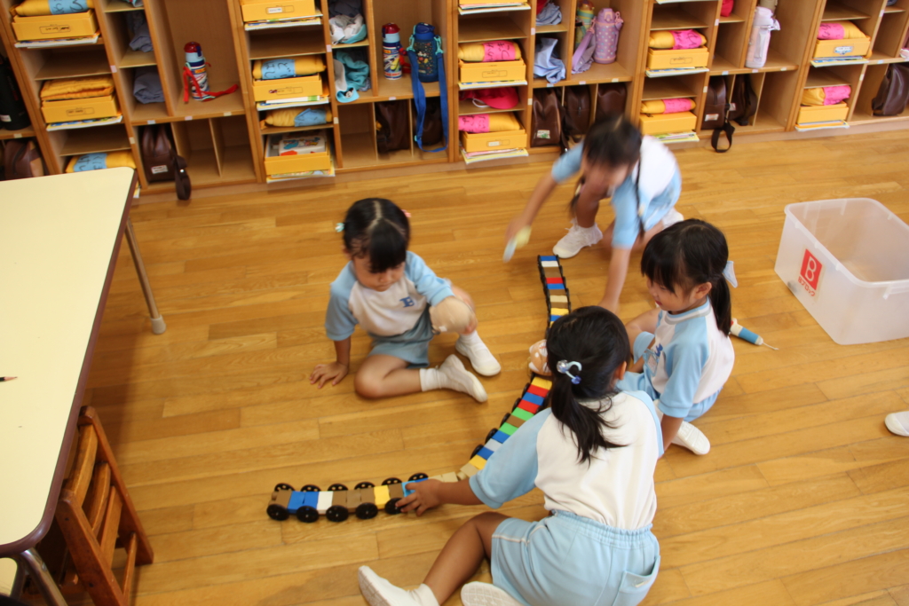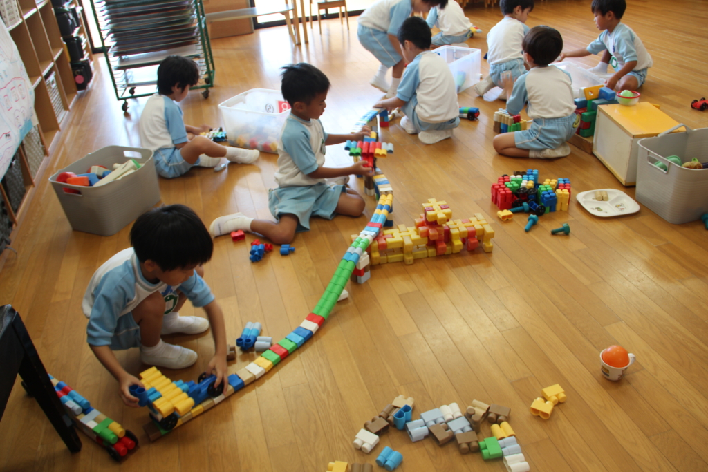 子どもたちは、運動会の練習や、文字、音楽、製作、絵とたくさんのことに毎日取り組んでいますが、自分で選んで、決めて、取り組む遊びはとても大切な学びです。