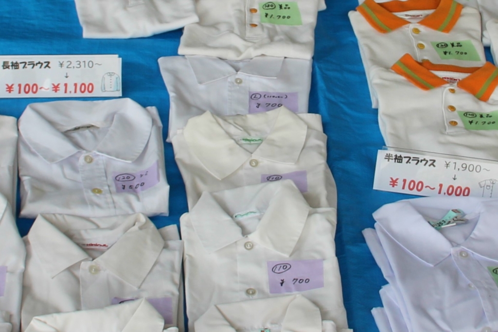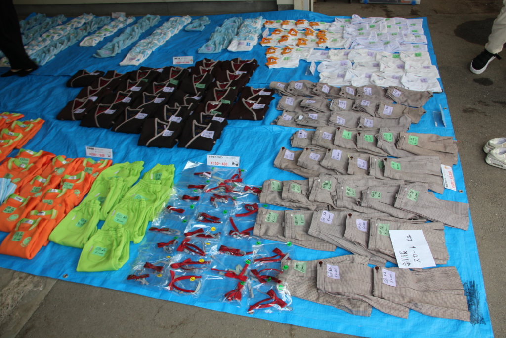 明日9月26日(金)も、今日と同じく午前9時から午前11時の間、東駐車場前で販売が行われます。制服や体操服、帽子、ブラウス、ネクタイなど多数用意しておりますので、ぜひ、来てみてください。