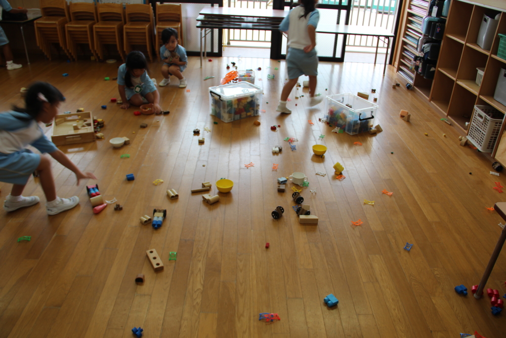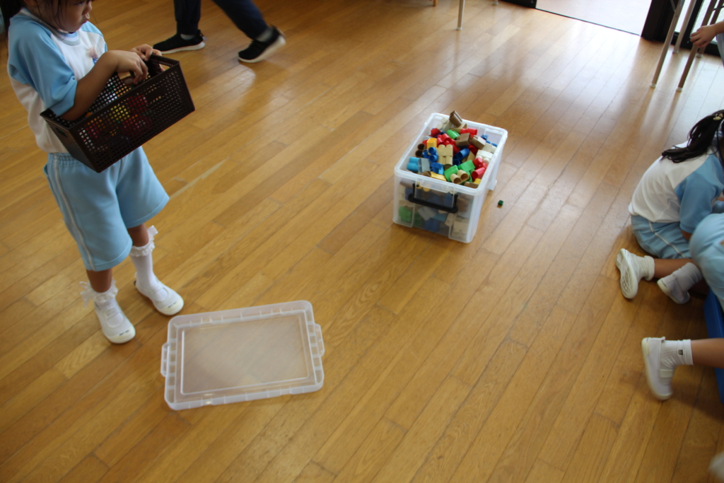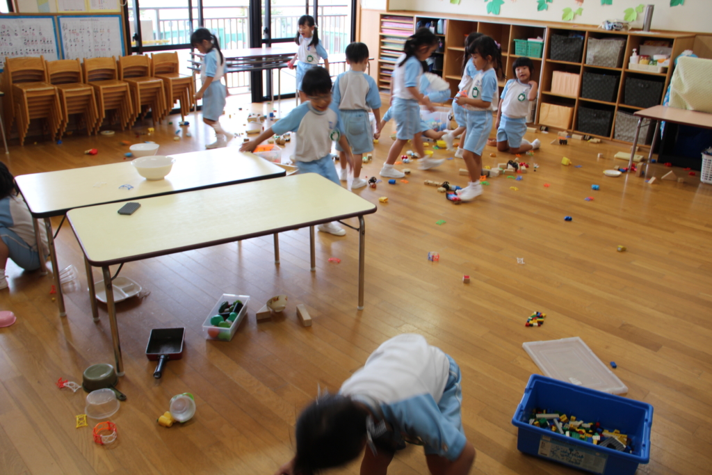 楽しみながら、片付けをしているようにも見える子もたくさんいます。