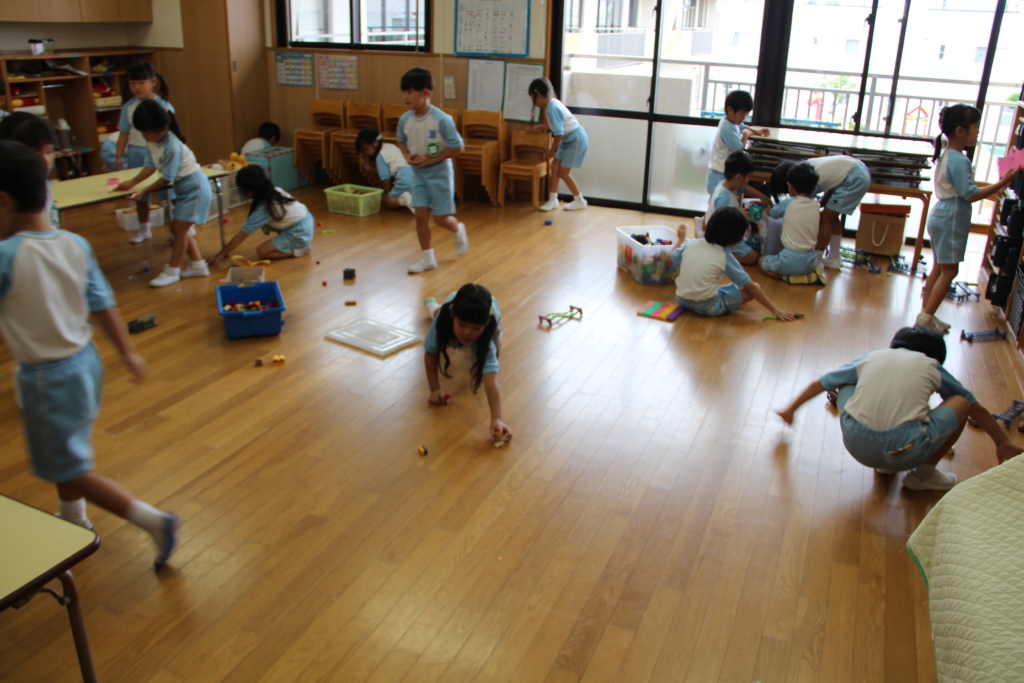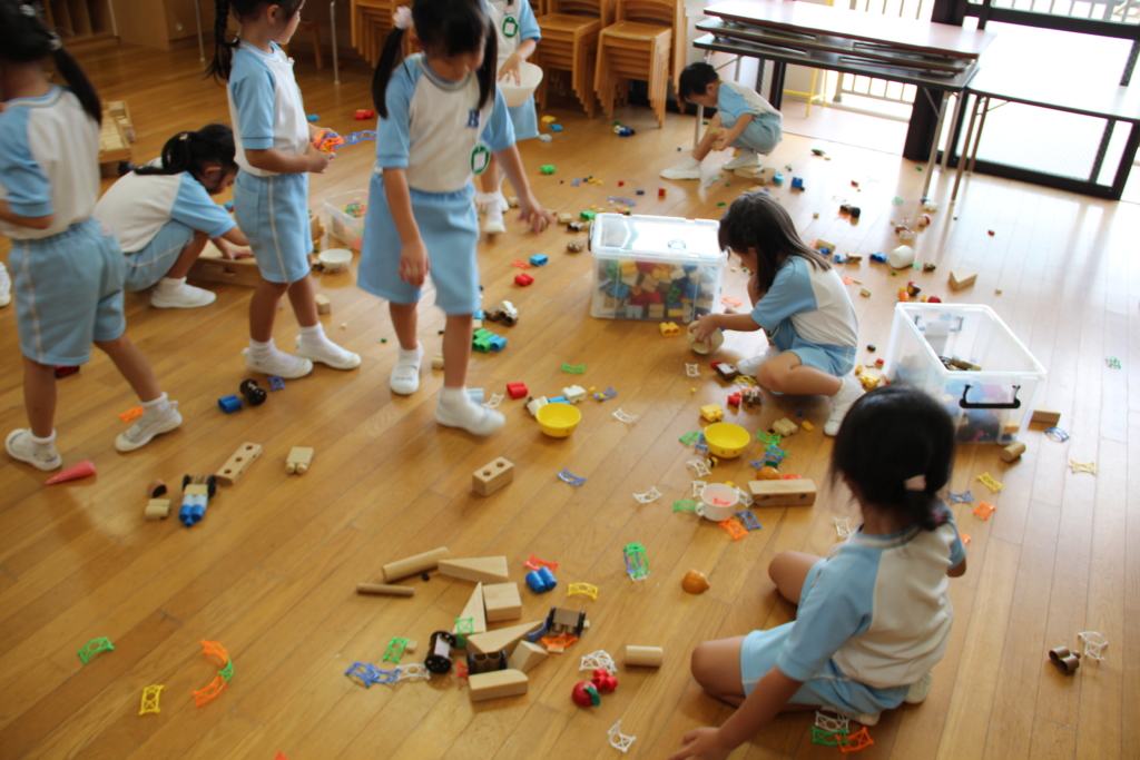 白ちゅうりっぷ組や年少組の時から片付けの習慣化を定着させてきた成果だと思います。