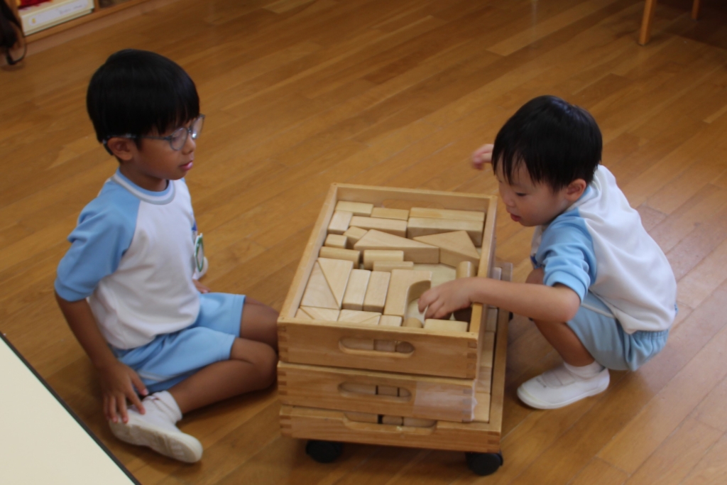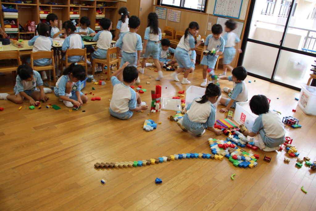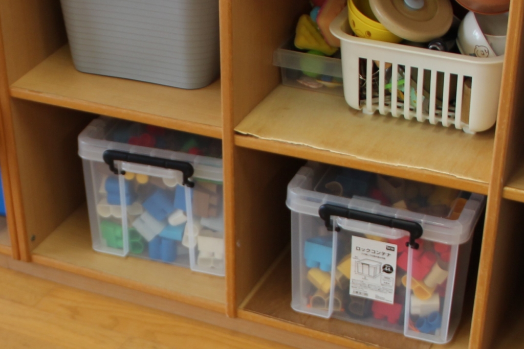 子どもたち、毎日お部屋の中に、ブロックなどのおもちゃを
