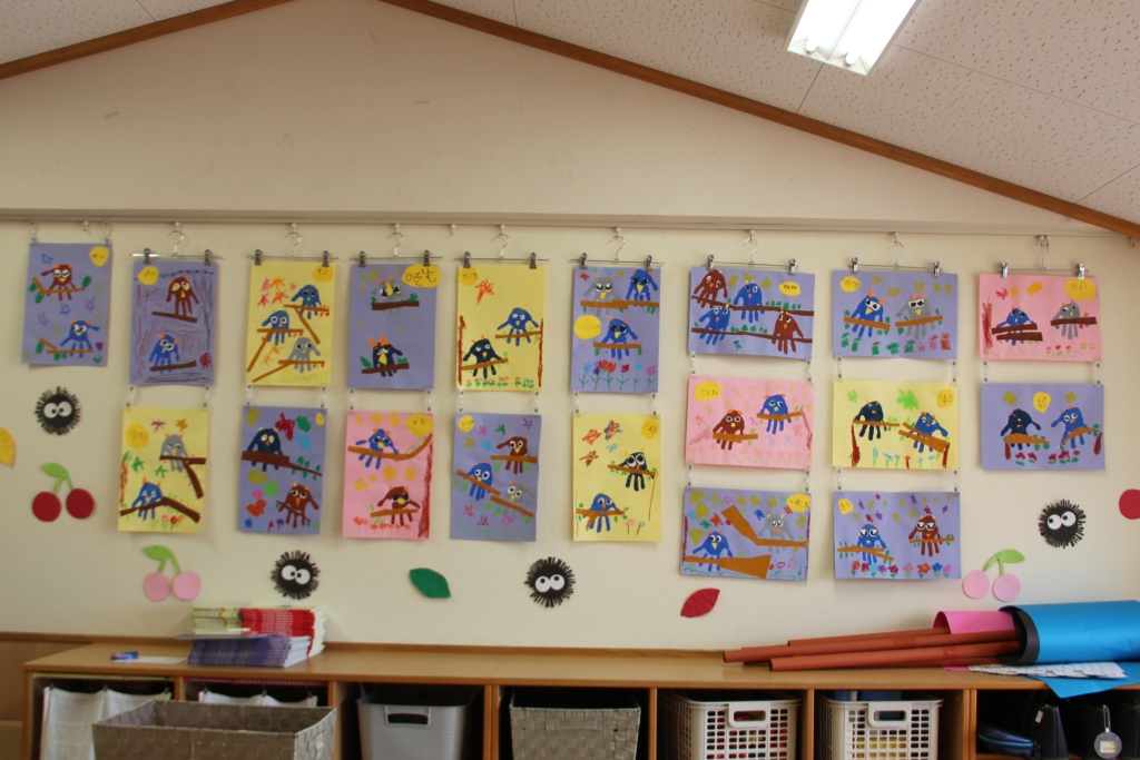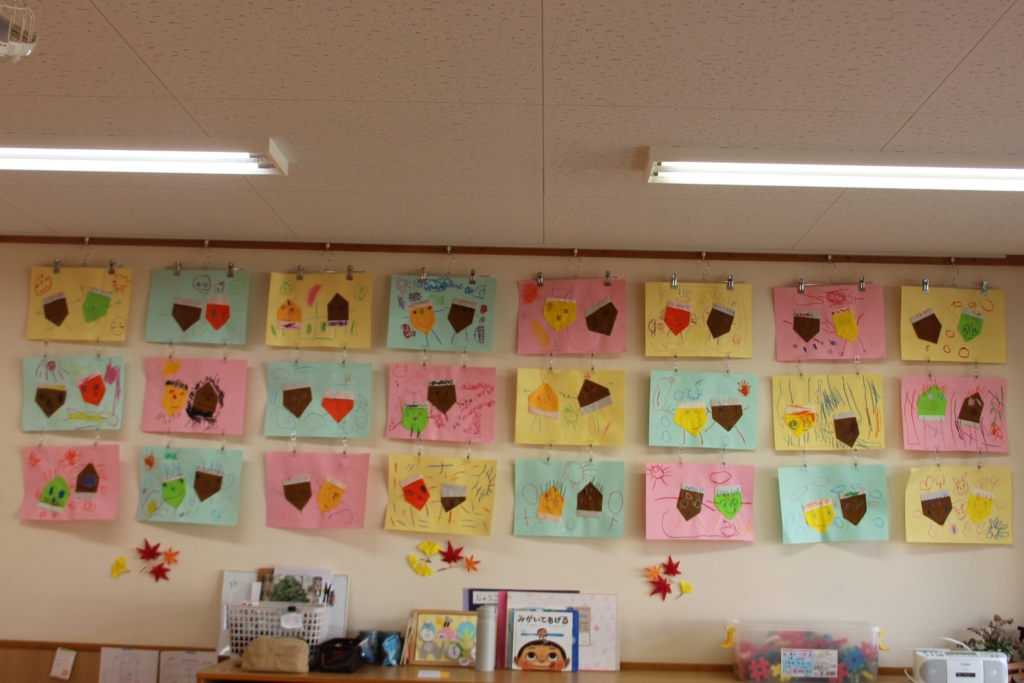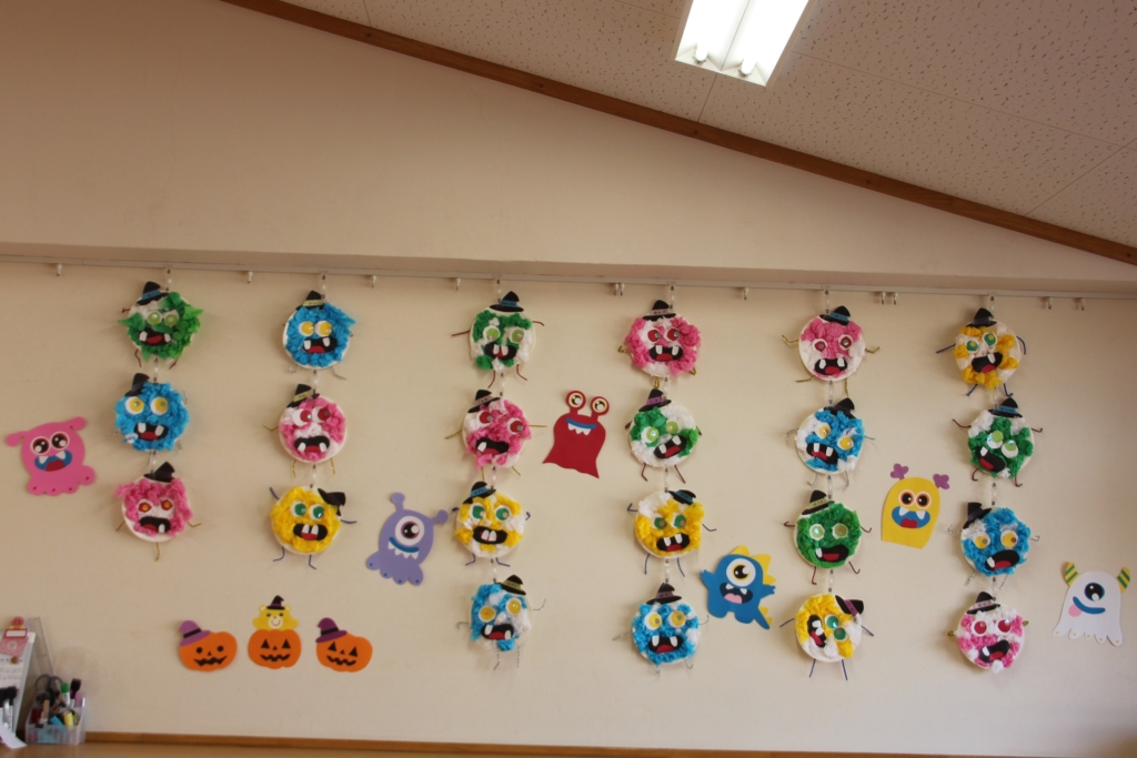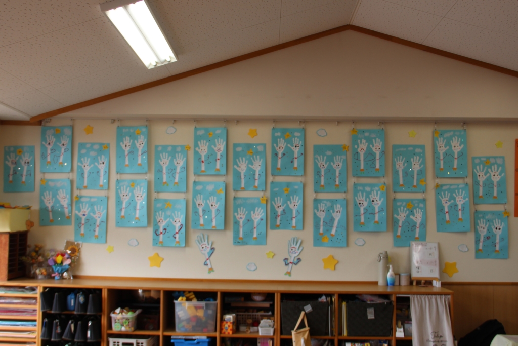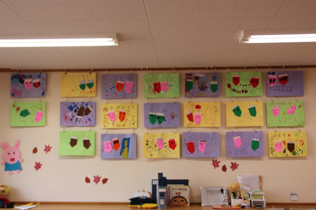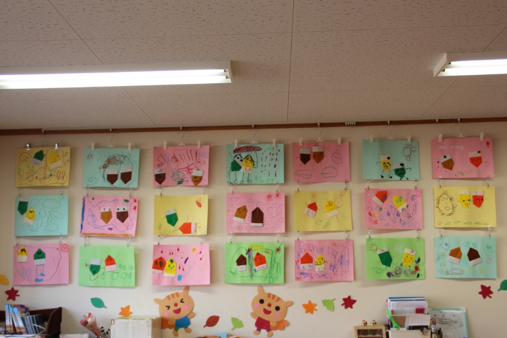 お部屋を彩る、子どもたちの作品 この季節を彩る作品や、個性を表す作品、どのお部屋も見ていて幸せをいただけます😍 まずは、白ちゅうりっぷ組さん