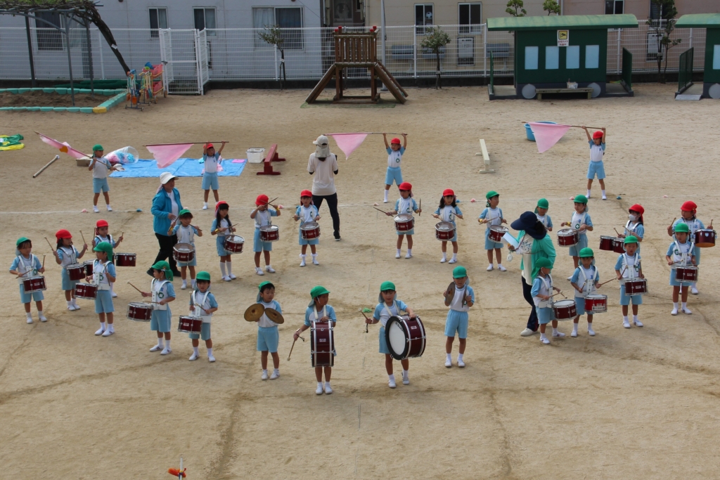 年長組が、楽器を持って鼓笛隊の練習を開始しました🎷