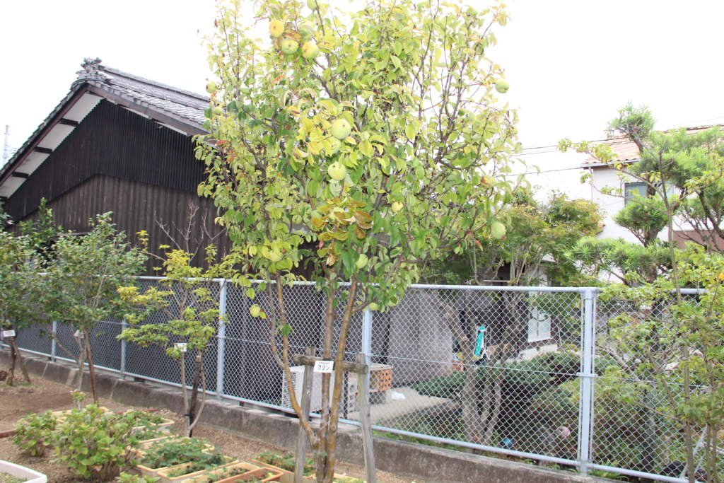 幼稚園の裏門を入ってすぐのところに、大きな実をつけています🍐