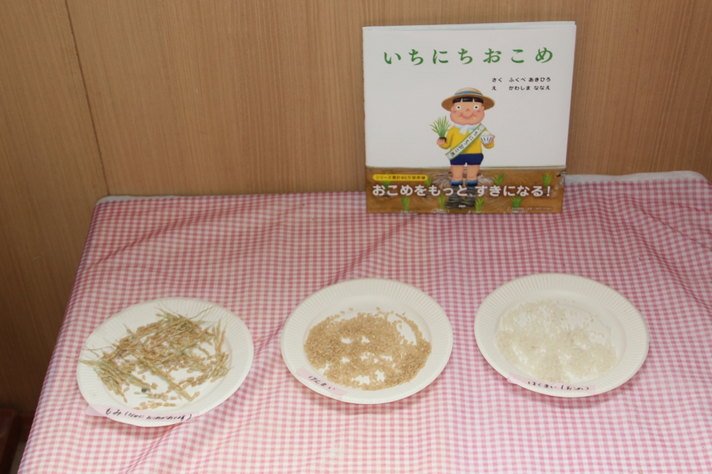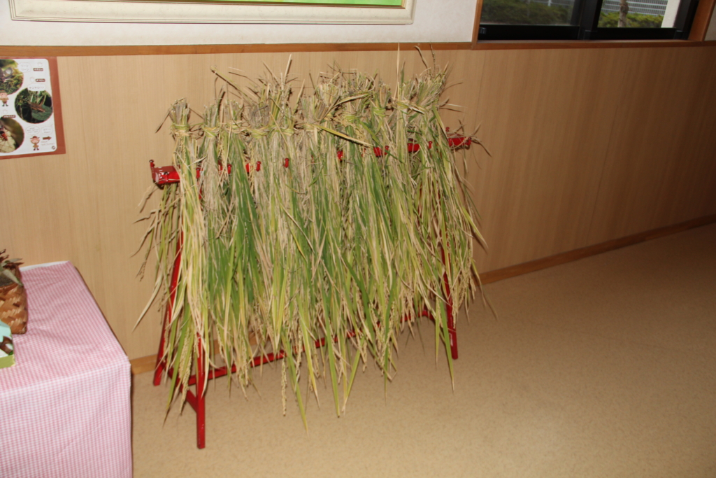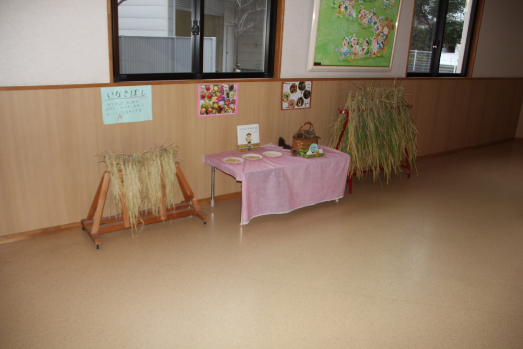 栗と共に、10月10日に年少組さんが収穫した「稲~お米」が展示してあります🍙