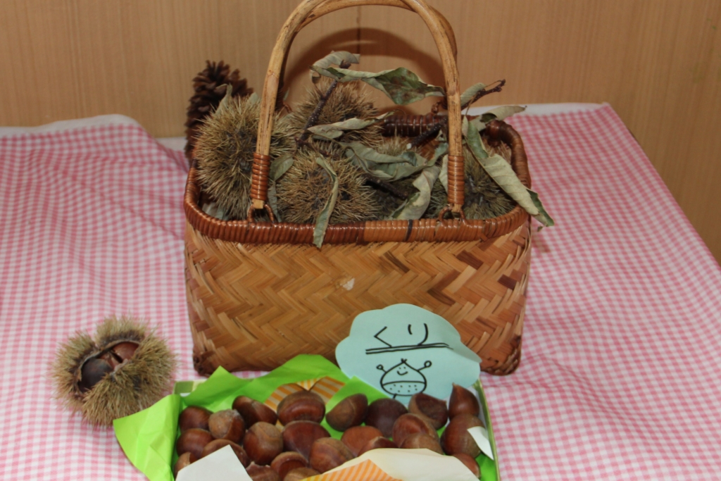 季節の物を展示しているコーナーも、秋の木の実などを置いていましたが、