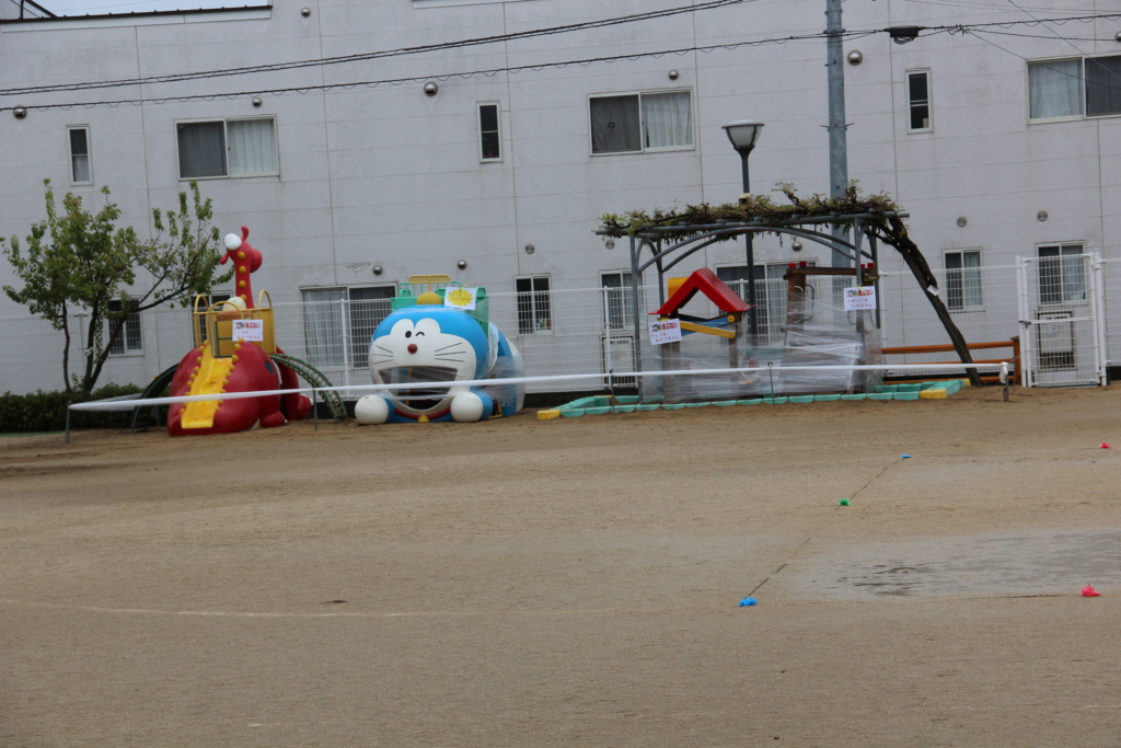 運動会に来てくれたお友達や、卒園児の皆さんが、運動会中に遊具で遊んで、けががあったらいけないので、使えなくしています。