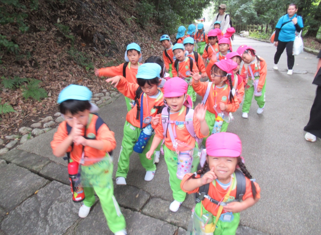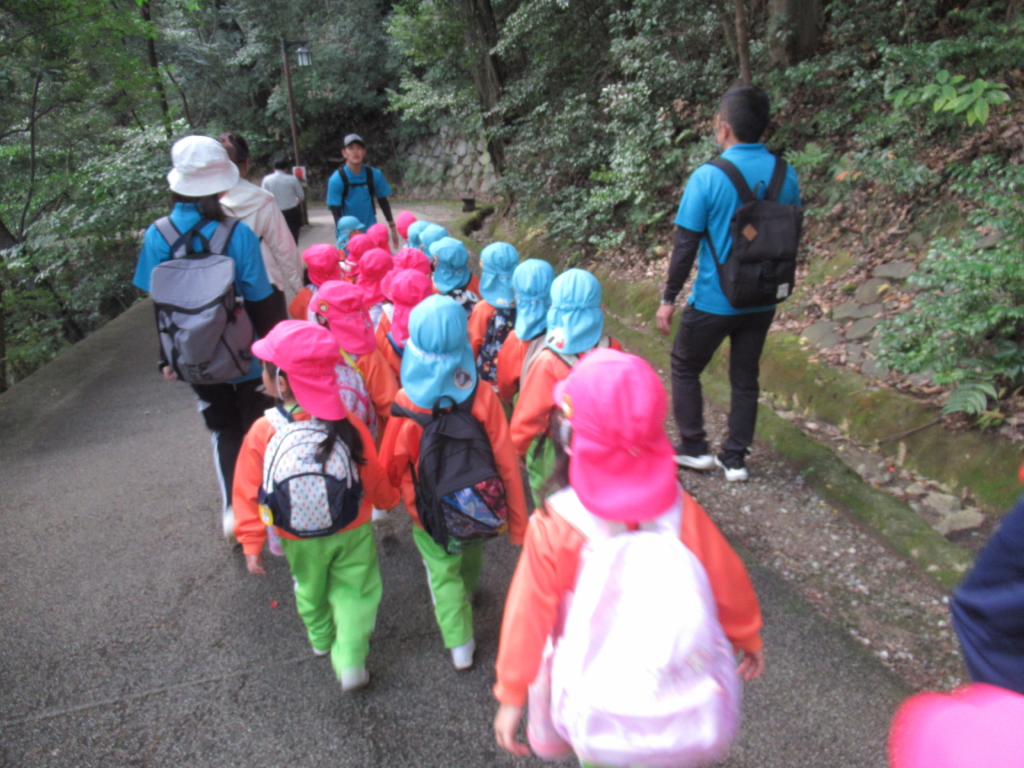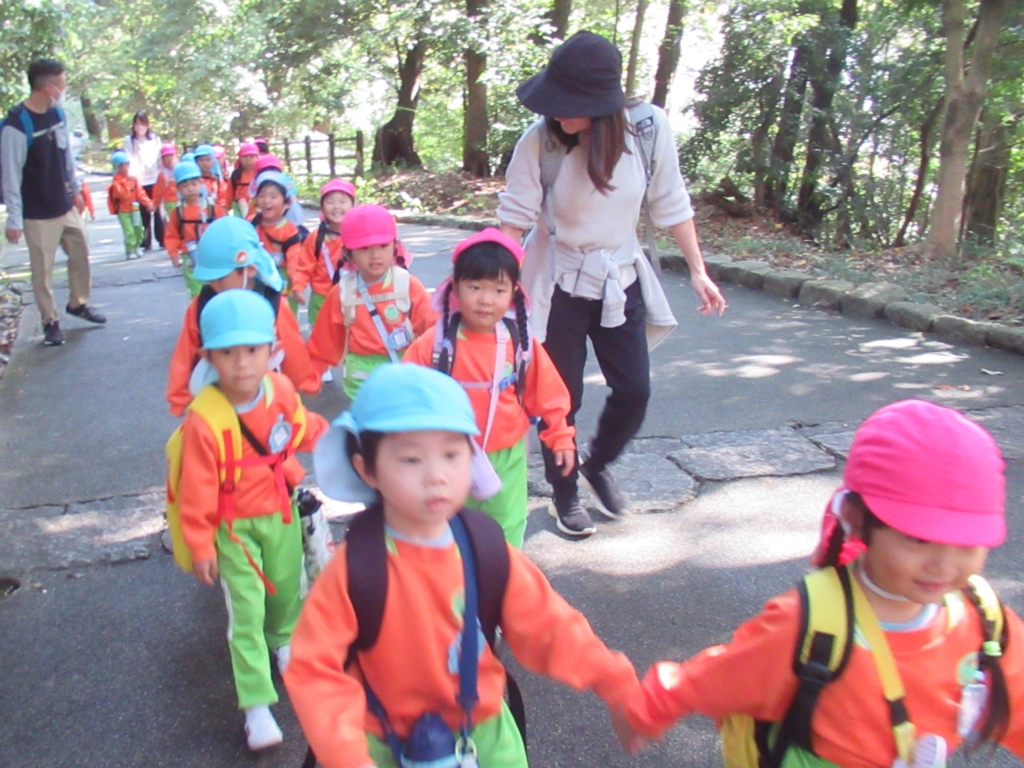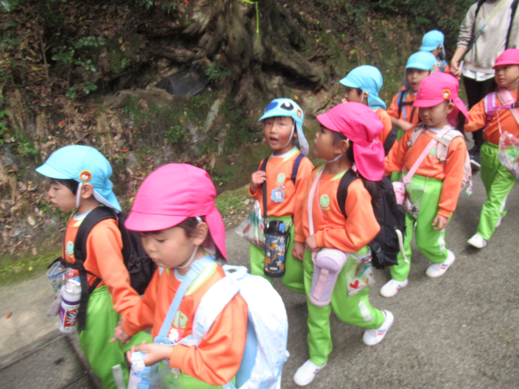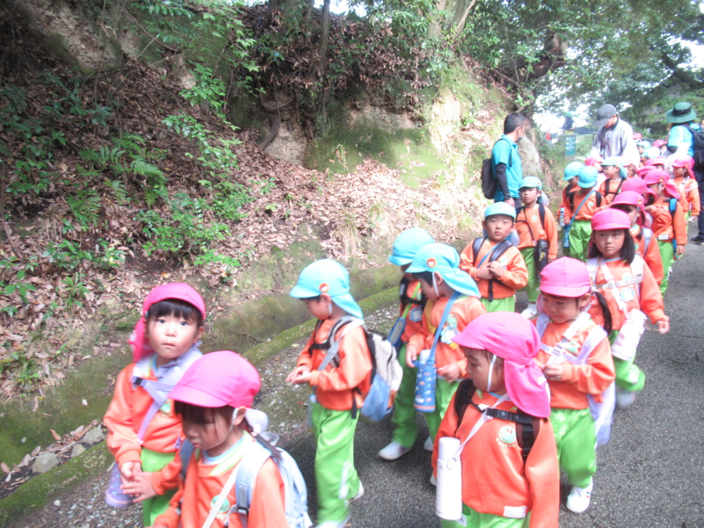 年中組さんが歩くのには、なかなかきついコースでしたが、みんなよく頑張って、登り切りました😊