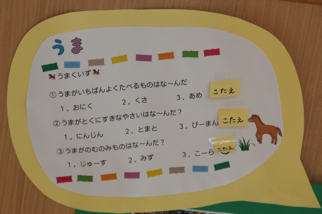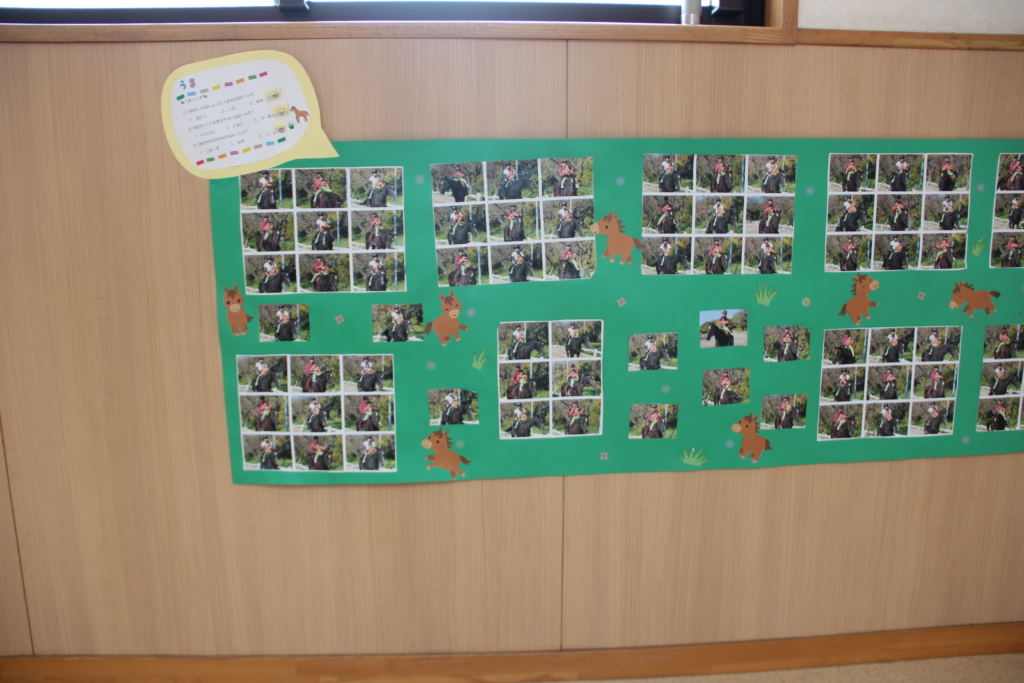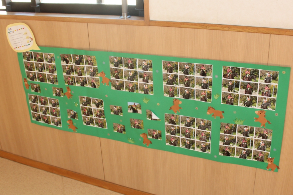 年中組さんが、この間行ってきた乗馬🐎の様子が、掲示してあります