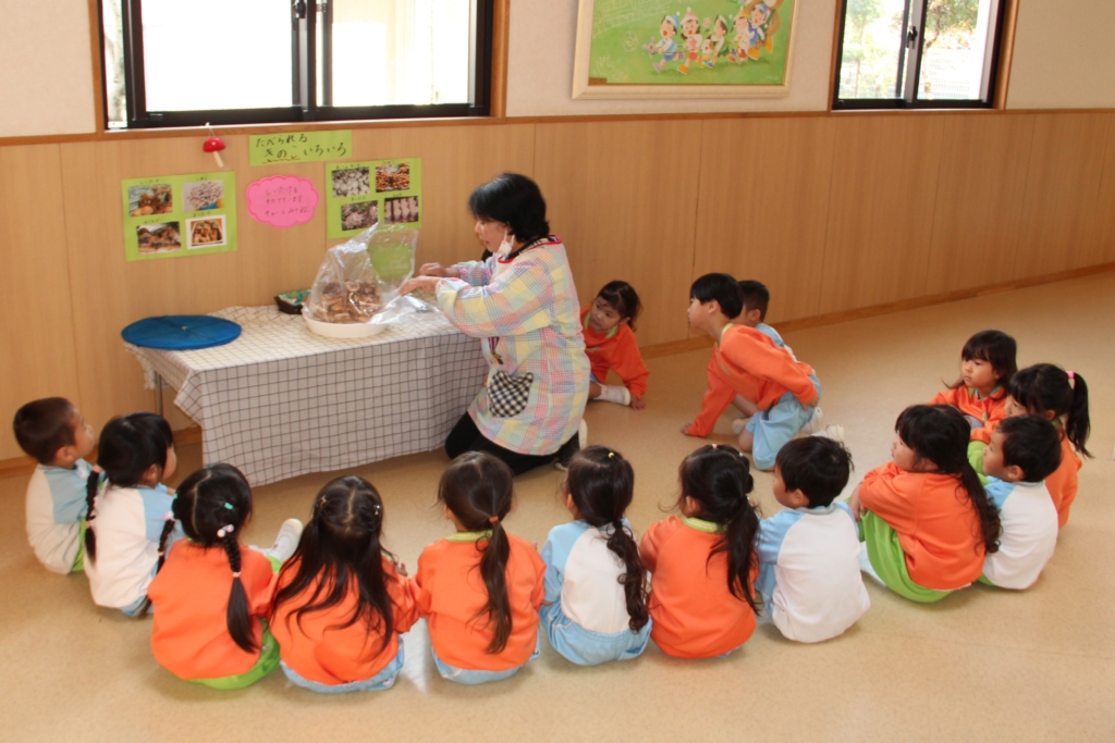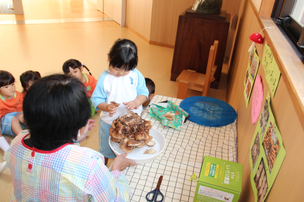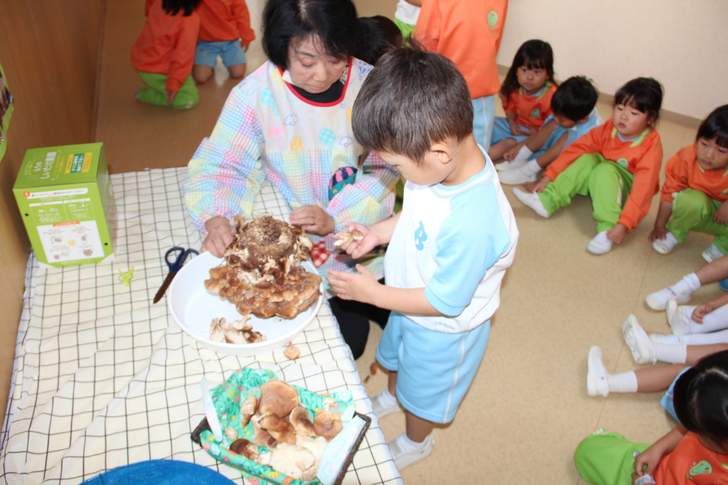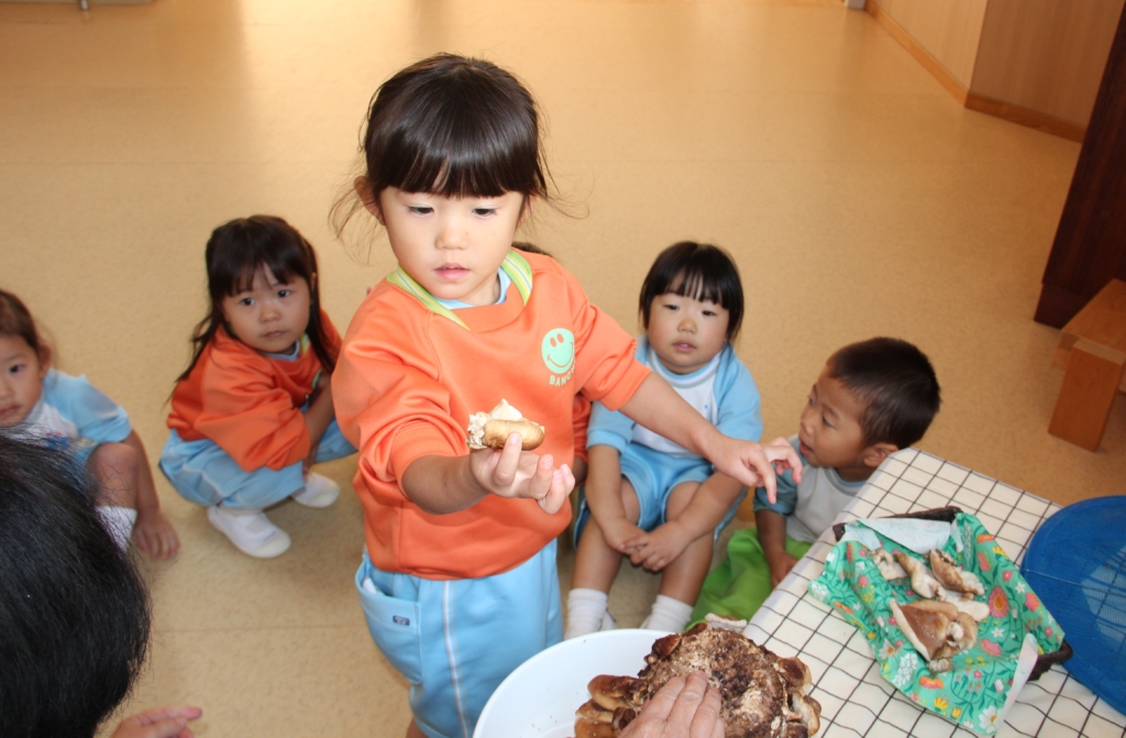 11月25日、今日は育てていたしいたけの収穫をひよこ組さんがしました🐤