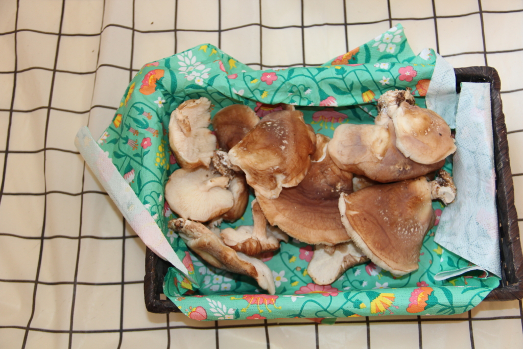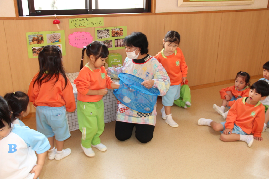 かごの中にしいたけを入れます😃