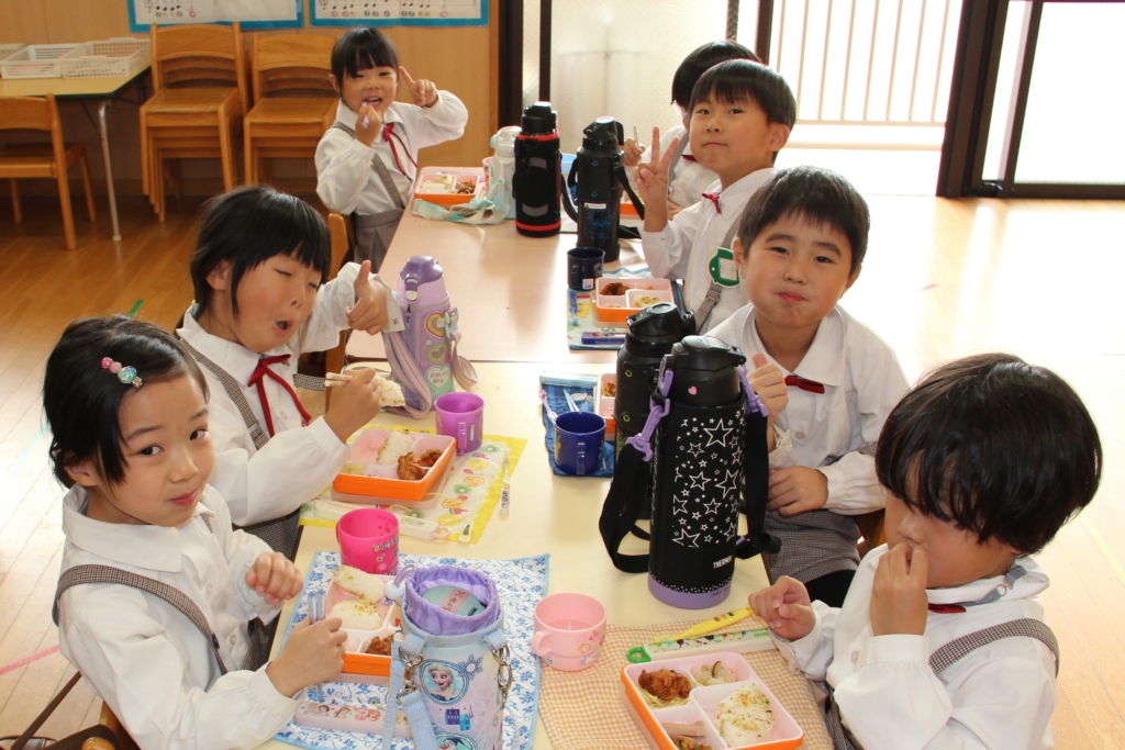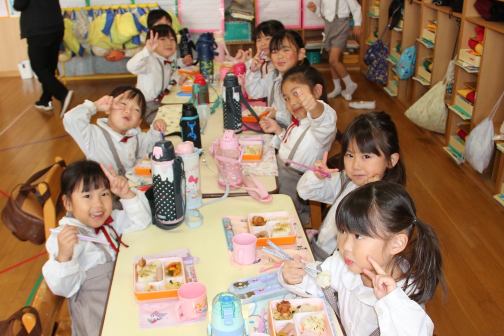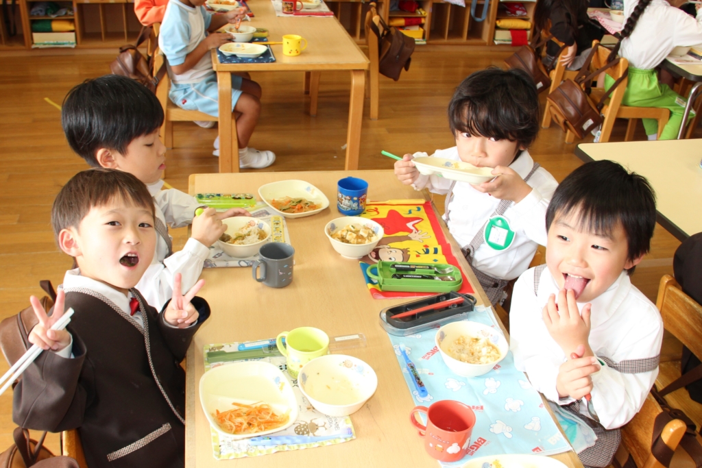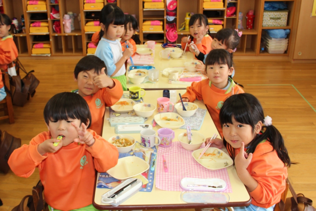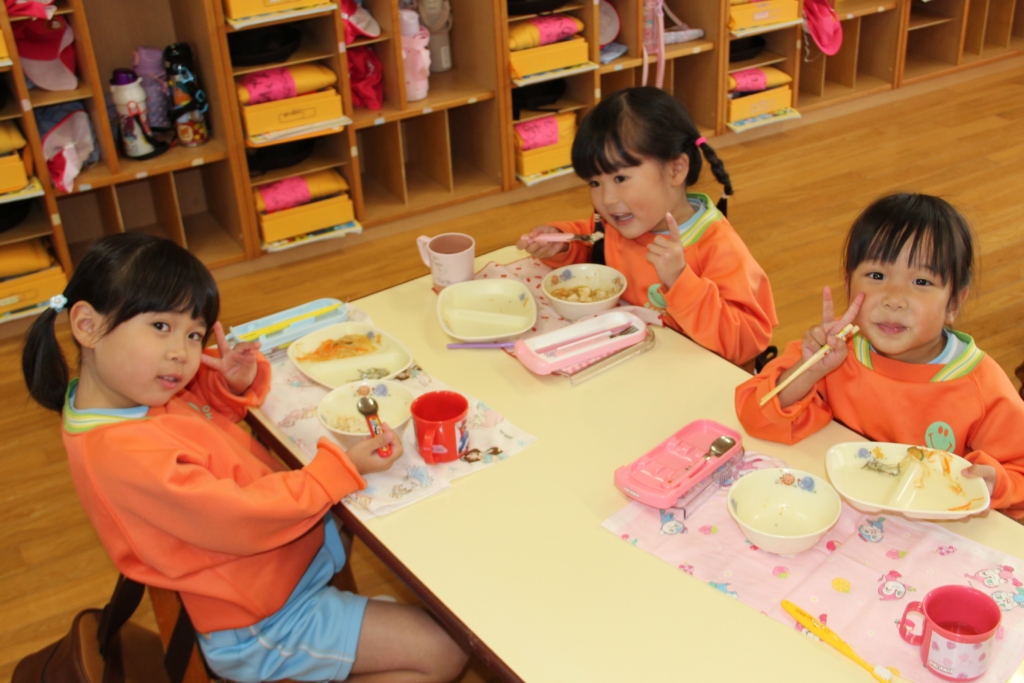 いちご組🍓さんも、めろん組🍈さんも、落ち着いて座って給食を食べていました🙂