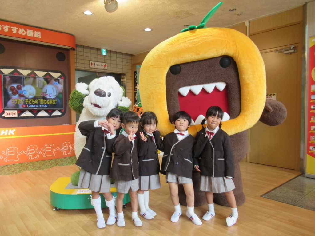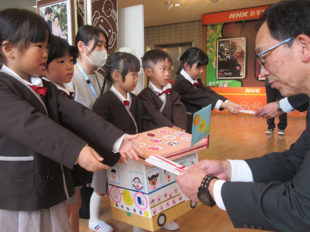 年末ということで、NHKの歳末助け合い運動に、年中組さんの代表が参加してきました😉