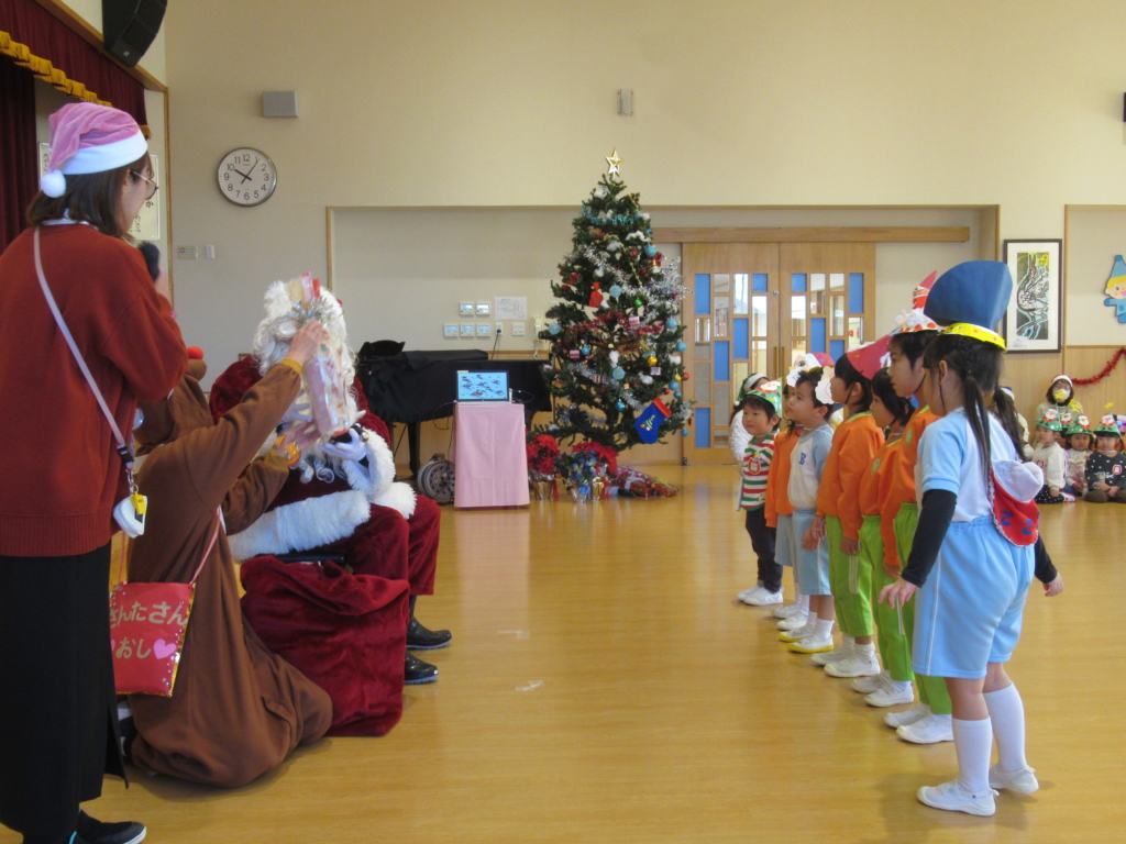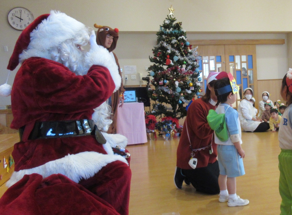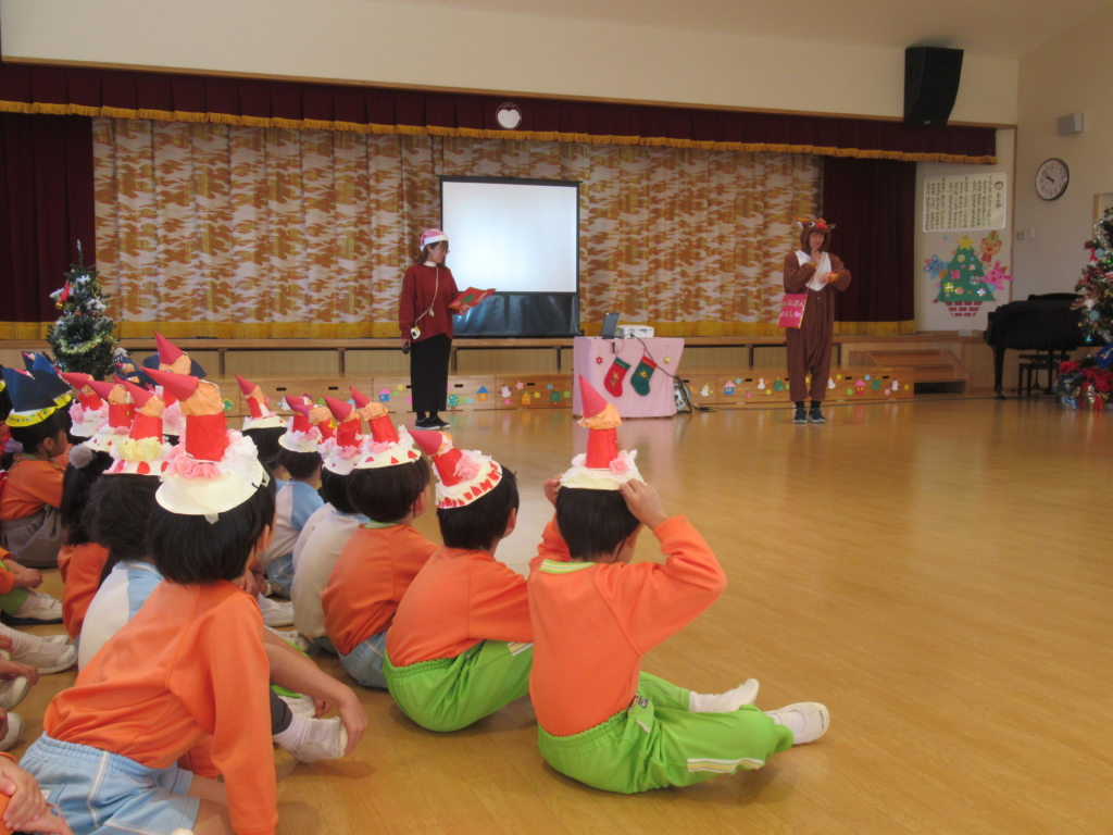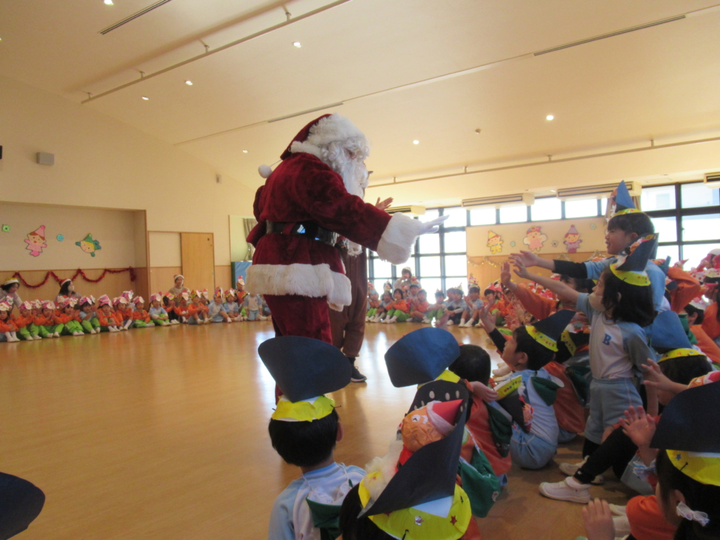 サンタさんが、やってくるということで、みんなドキドキしながら集会に参加していました。