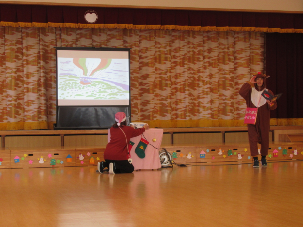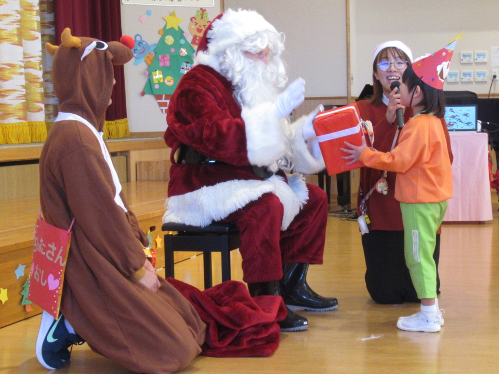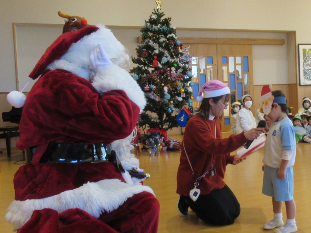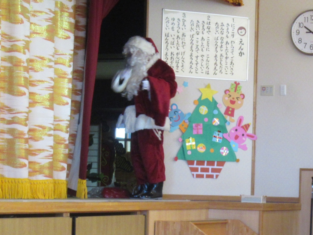 サンタさんが、やってくるということで、みんなドキドキしながら集会に参加していました。