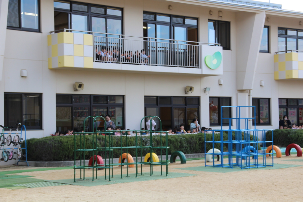 この表彰の様子を、年中組さんや年少組さんが、ベランダから見つめていてくれました😃