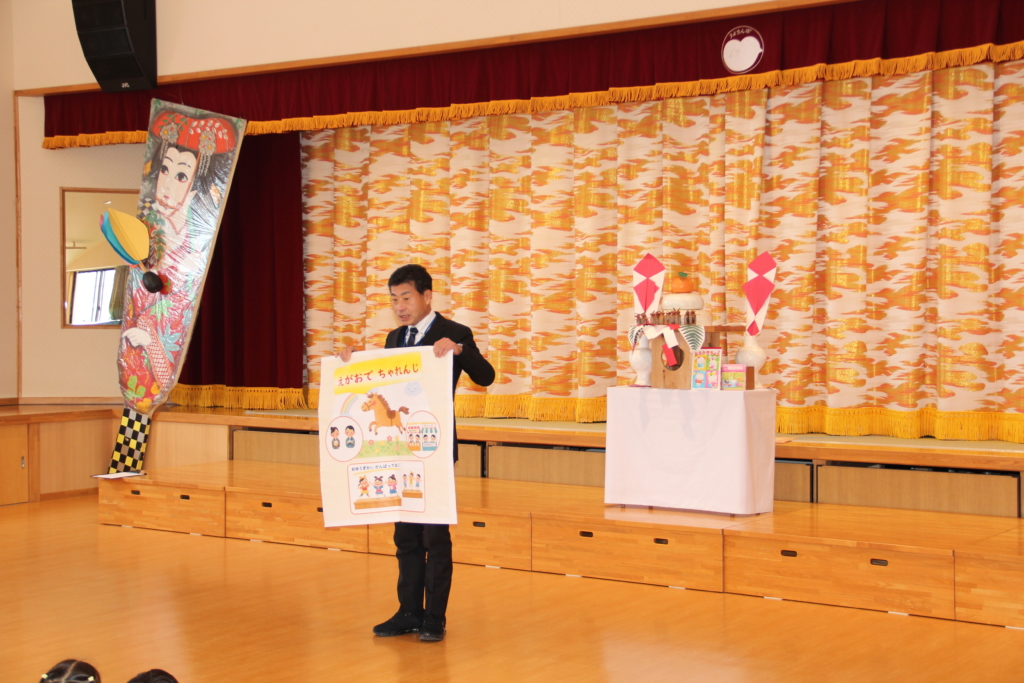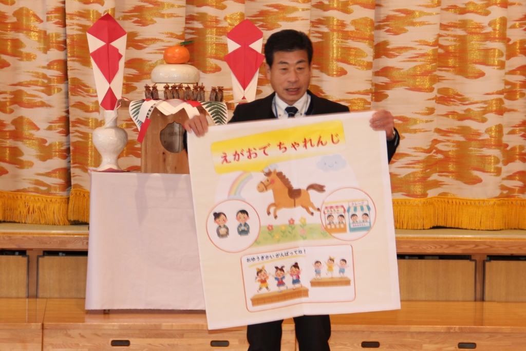 「3学期も 「えがおで ちゃれんじ」しましょう!」と、お話をしていただきました。