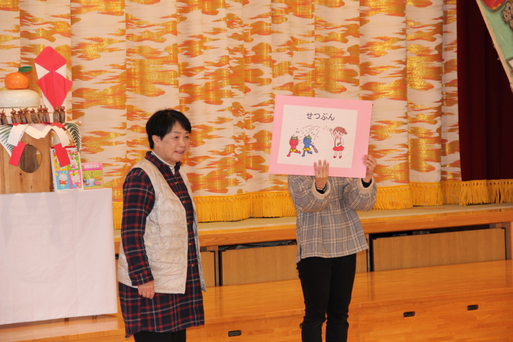その後は、進行の先生から、鏡餅等のお話をしていただきました。