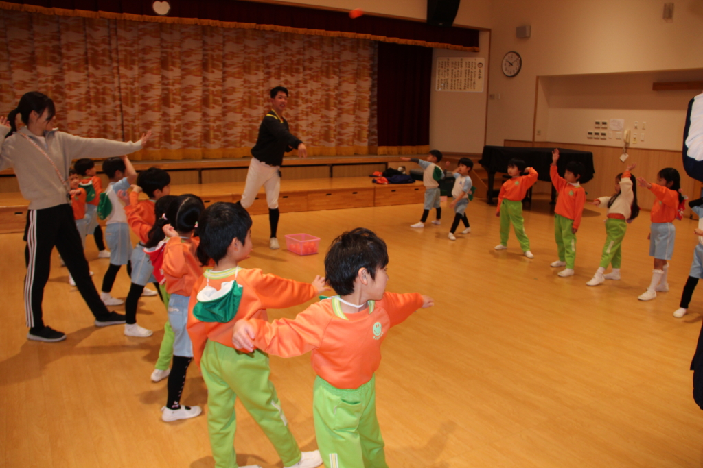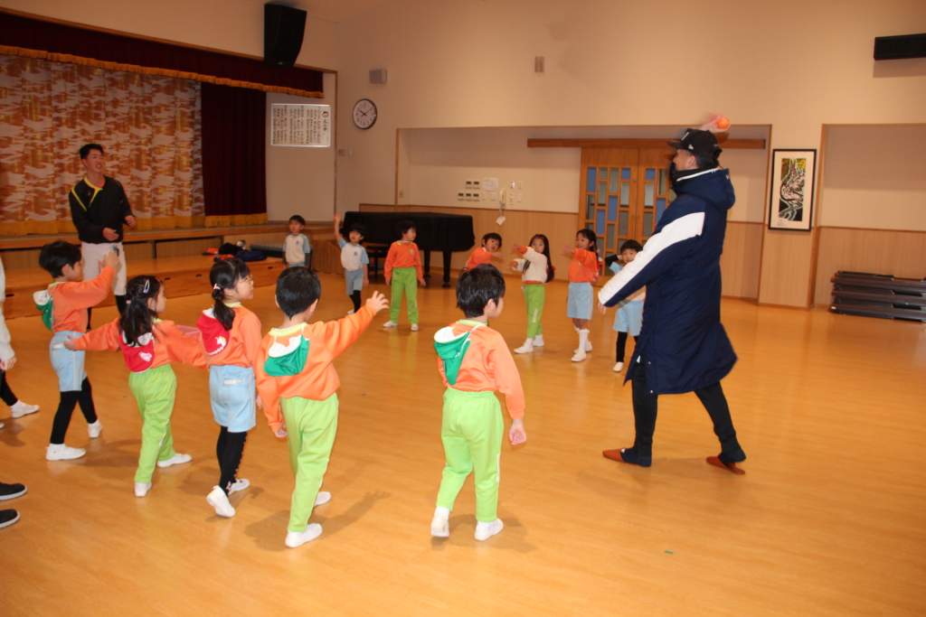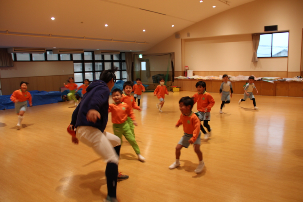 最初に自己紹介をしていただいた後、体操やおにごっこで体をあたためました。