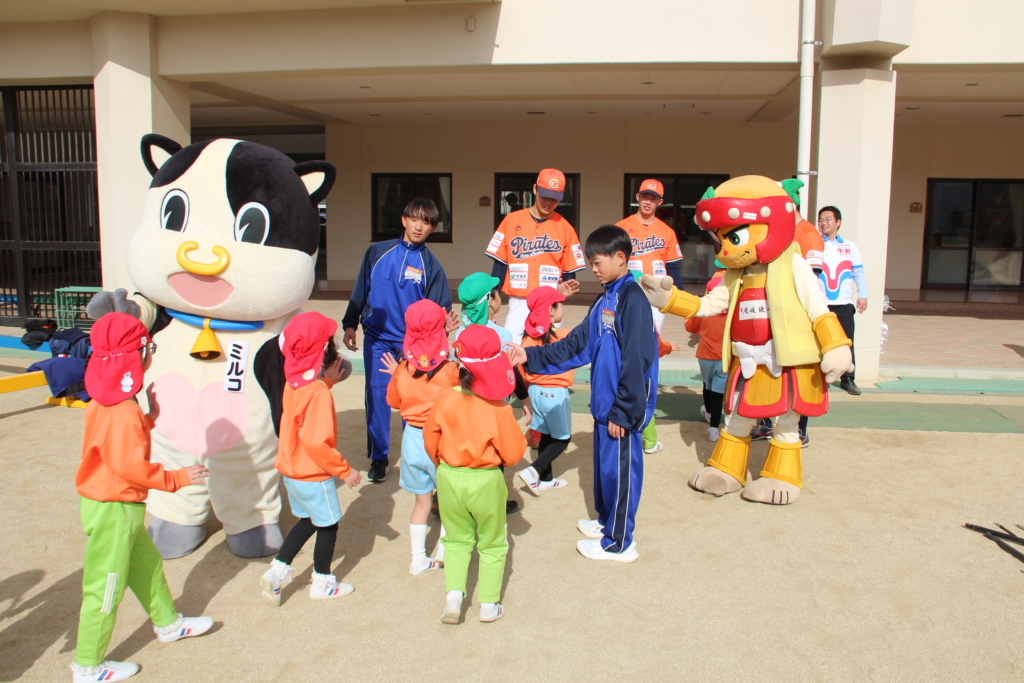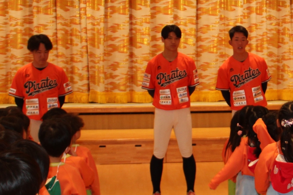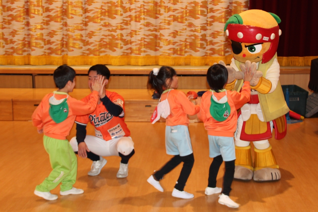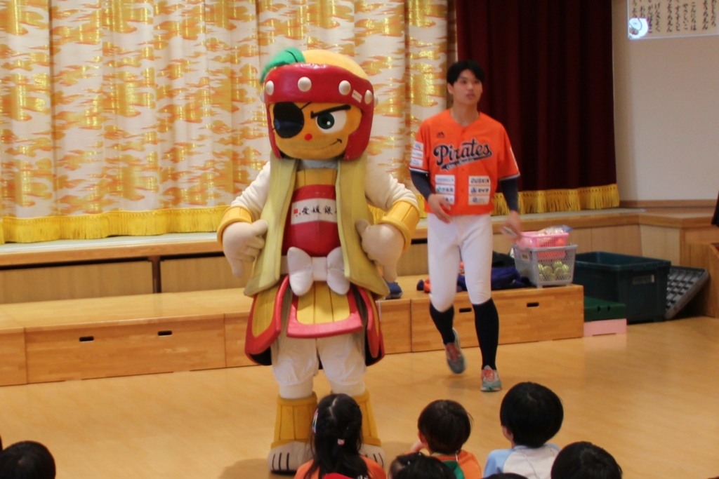 番町幼稚園のお友だち、みんなで愛媛マンダリンパイレーツを応援しようね!