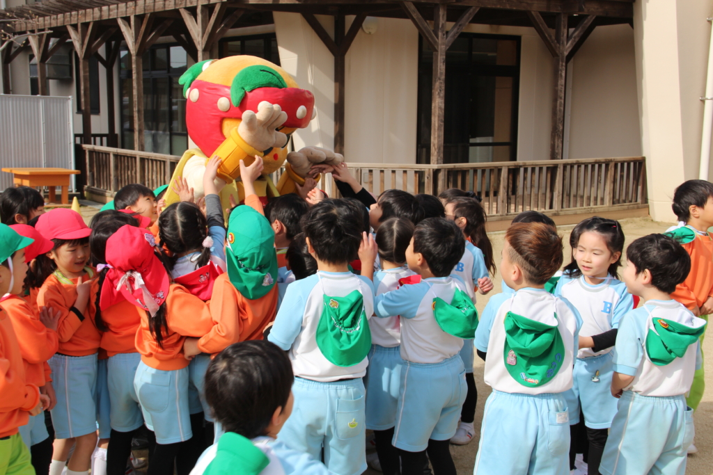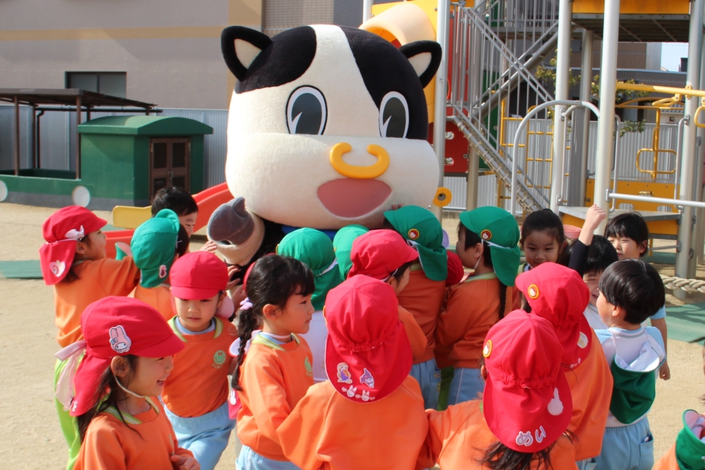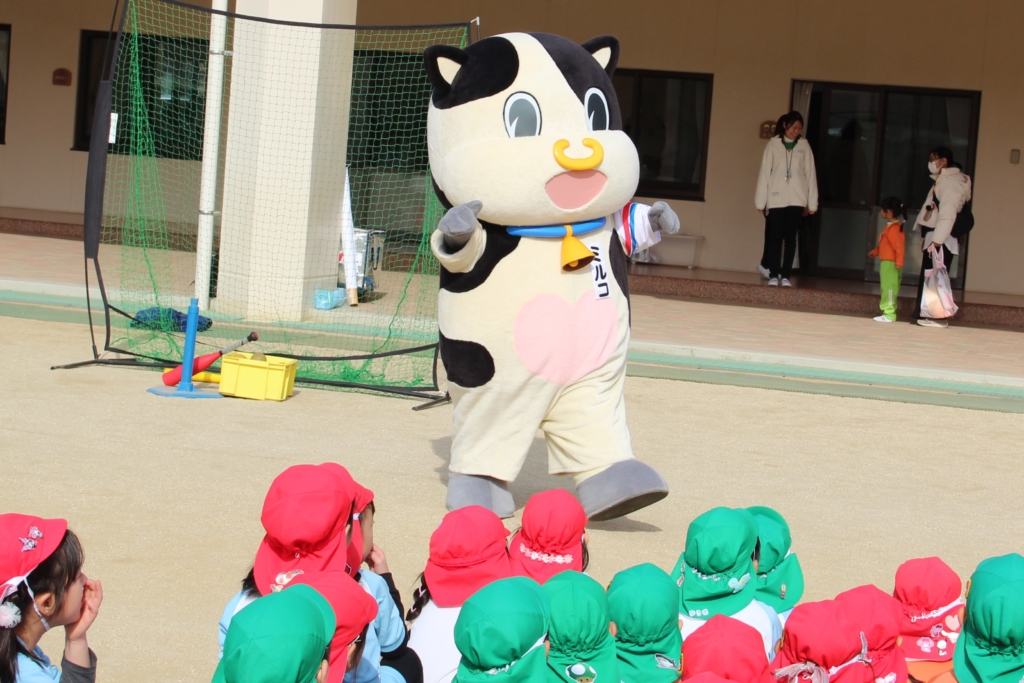 その上、15日には、この事業に協賛している「らくれん」のマスコット「ミルコ」も来てくれました