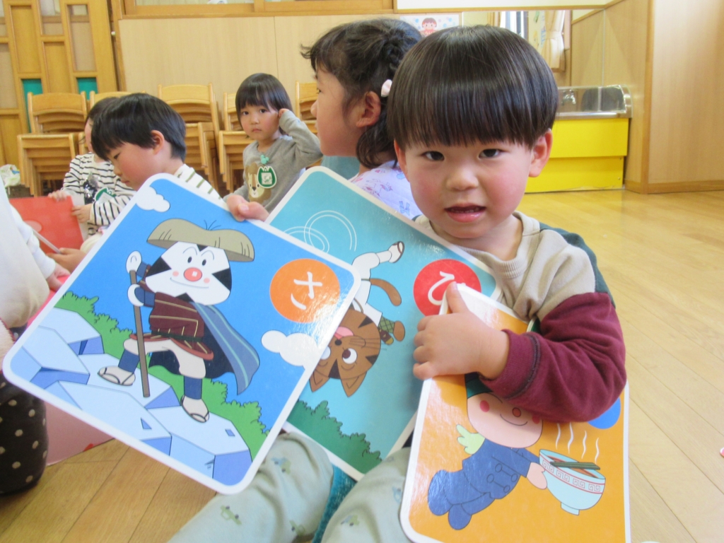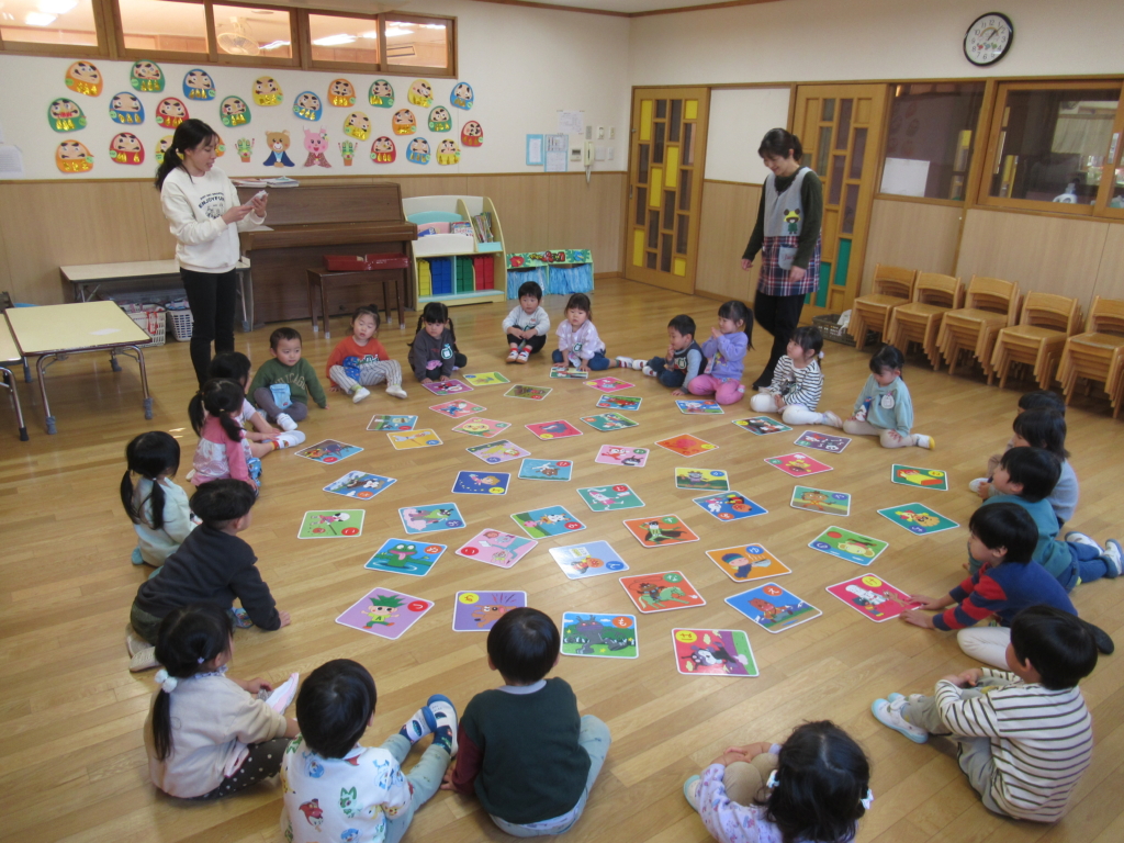 めろん組さんは、お部屋で大かるた大会をしていました。