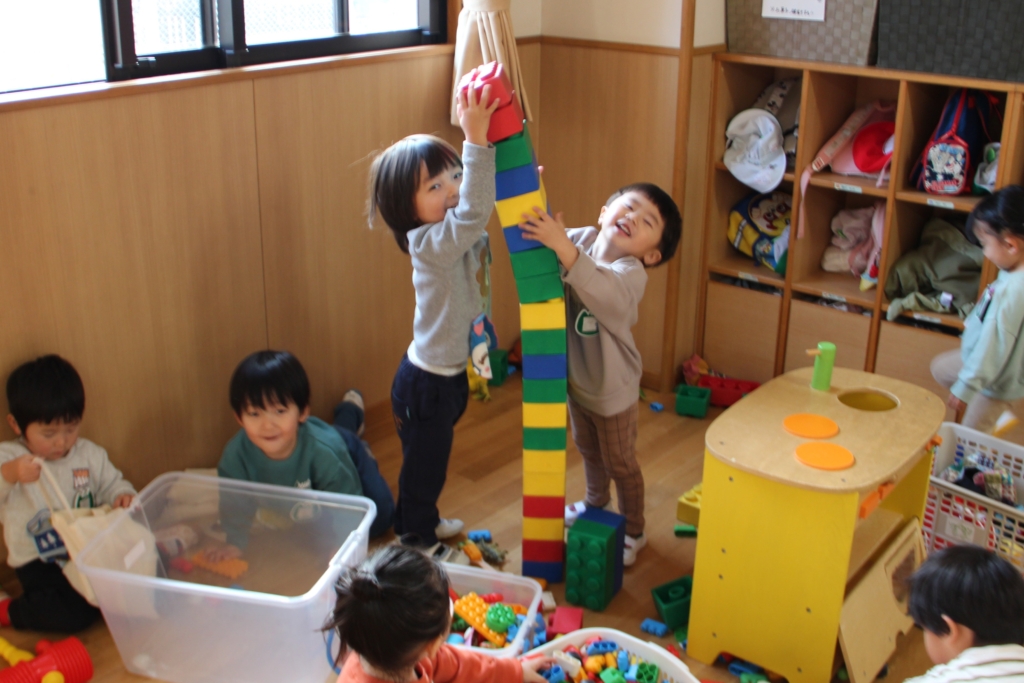 ブロックを高く積んだり・・・
