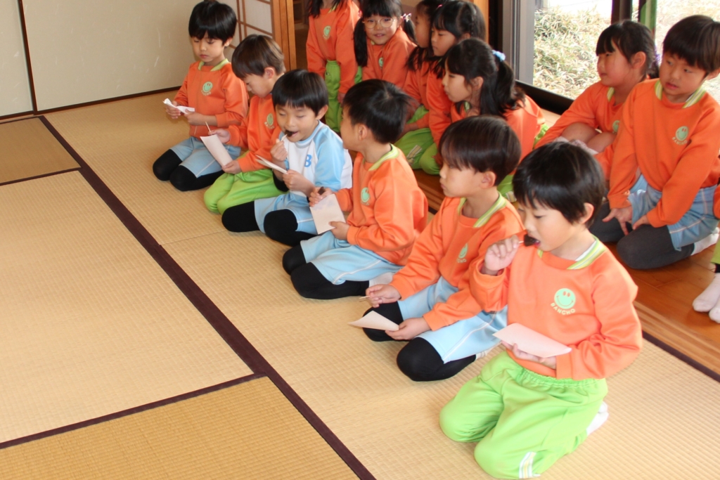 1月28日にもみじ組、29日にうめ組・つばき組、30日にさくら組・もも組がお茶会🍵を開きました。