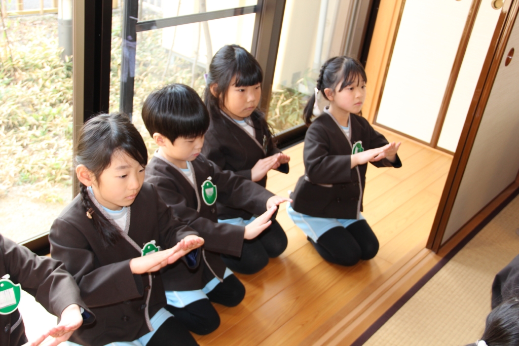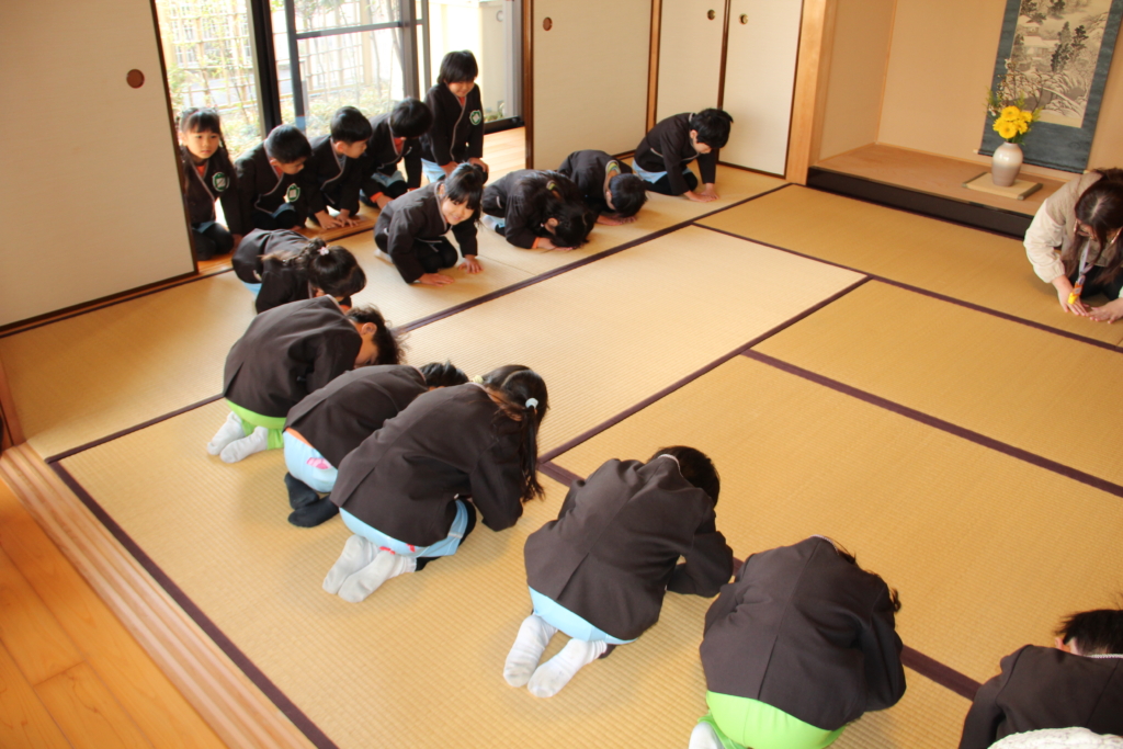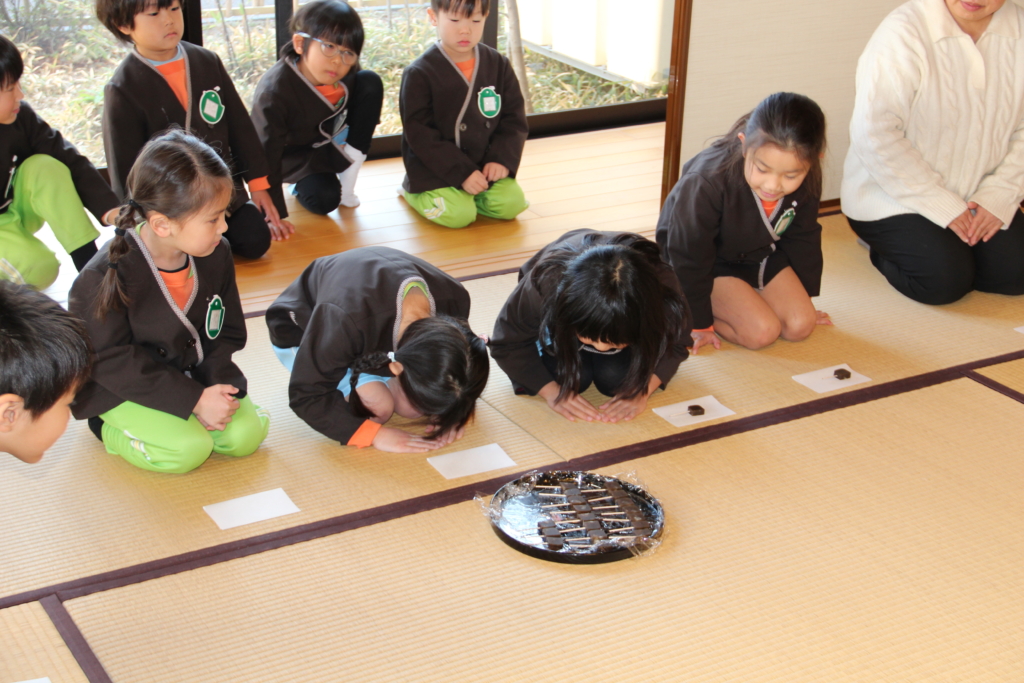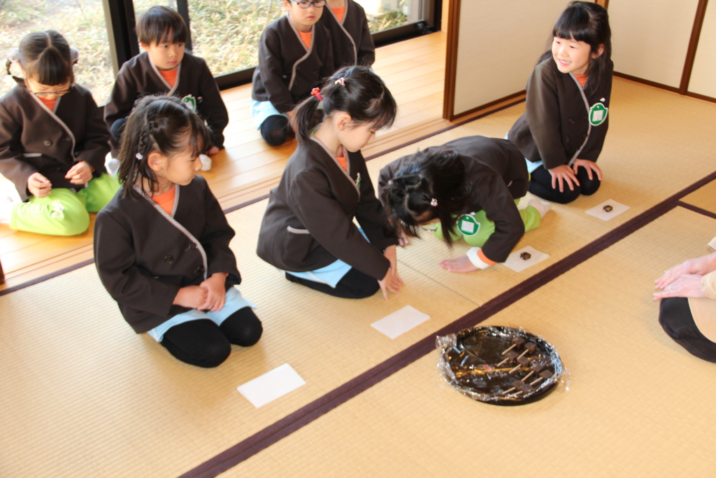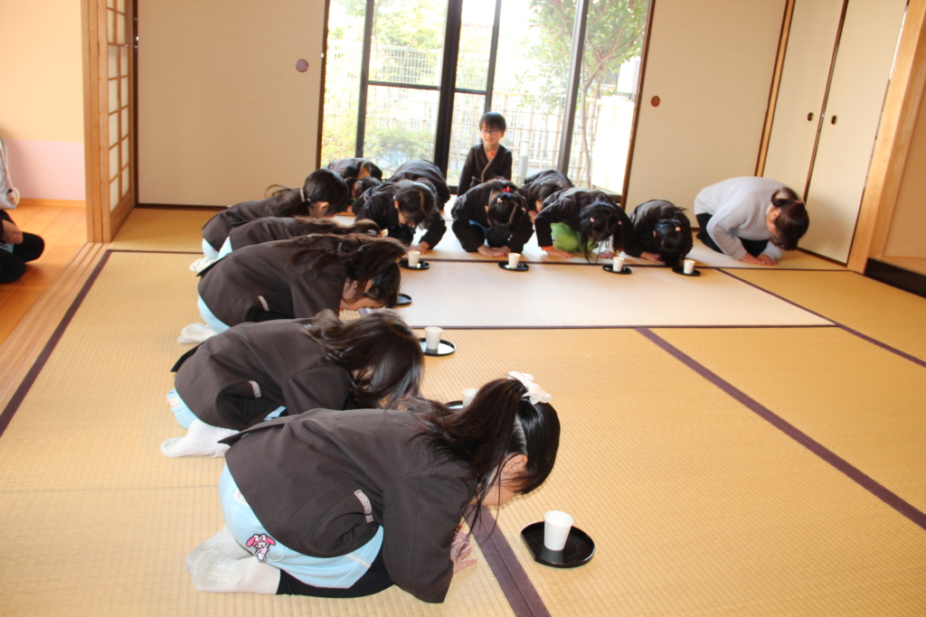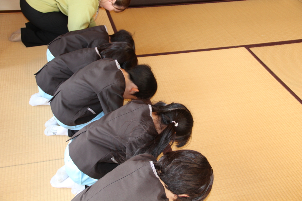 手の付き方、お辞儀の仕方、お菓子のいただき方等、教えてもらって実践します。