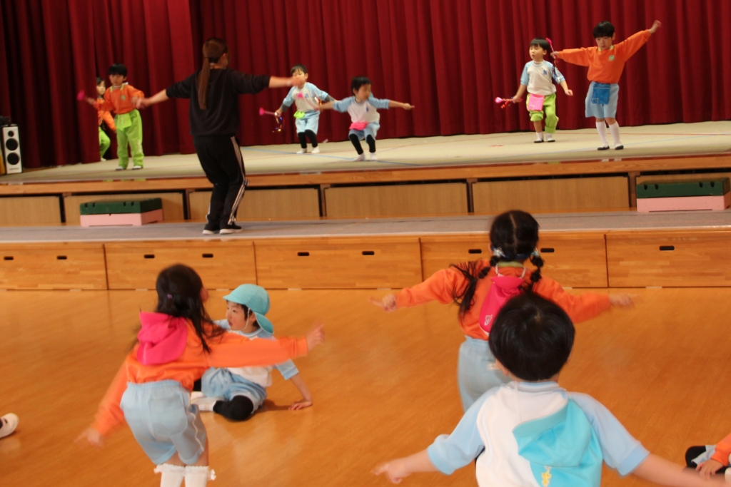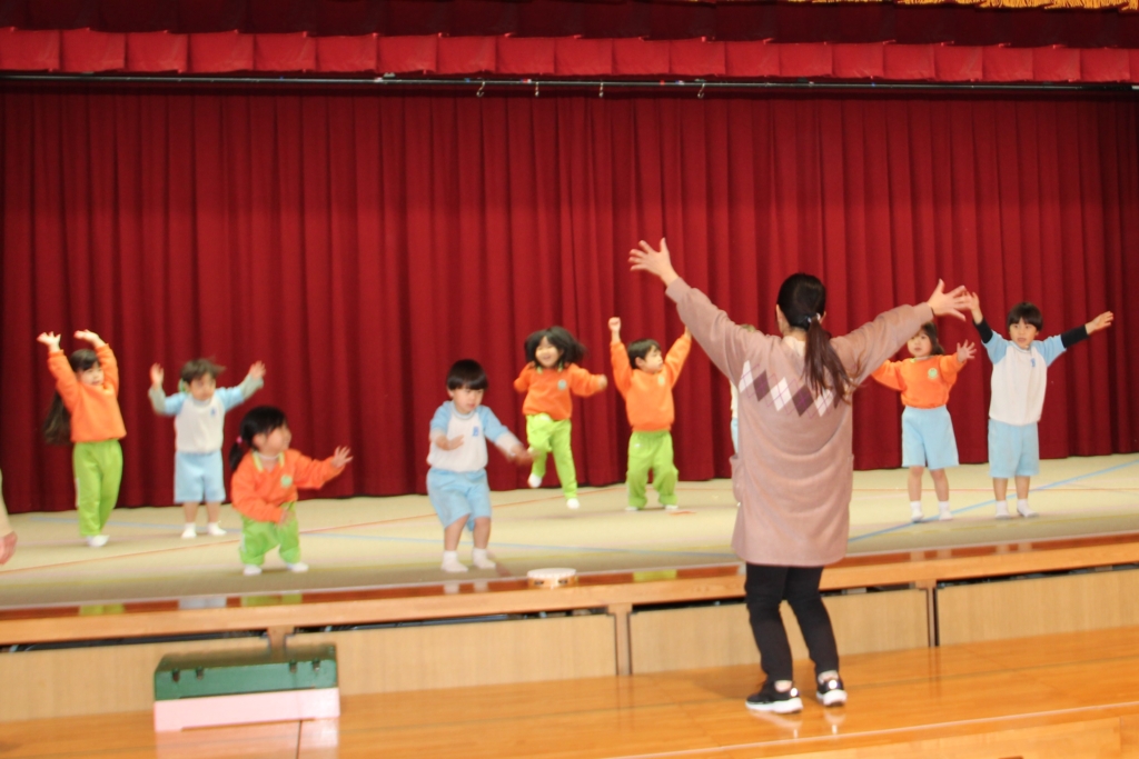 2月14日土曜日のお遊戯会に向けて、年少組・年中組は、絶賛練習中です。