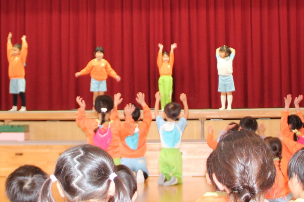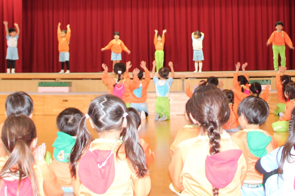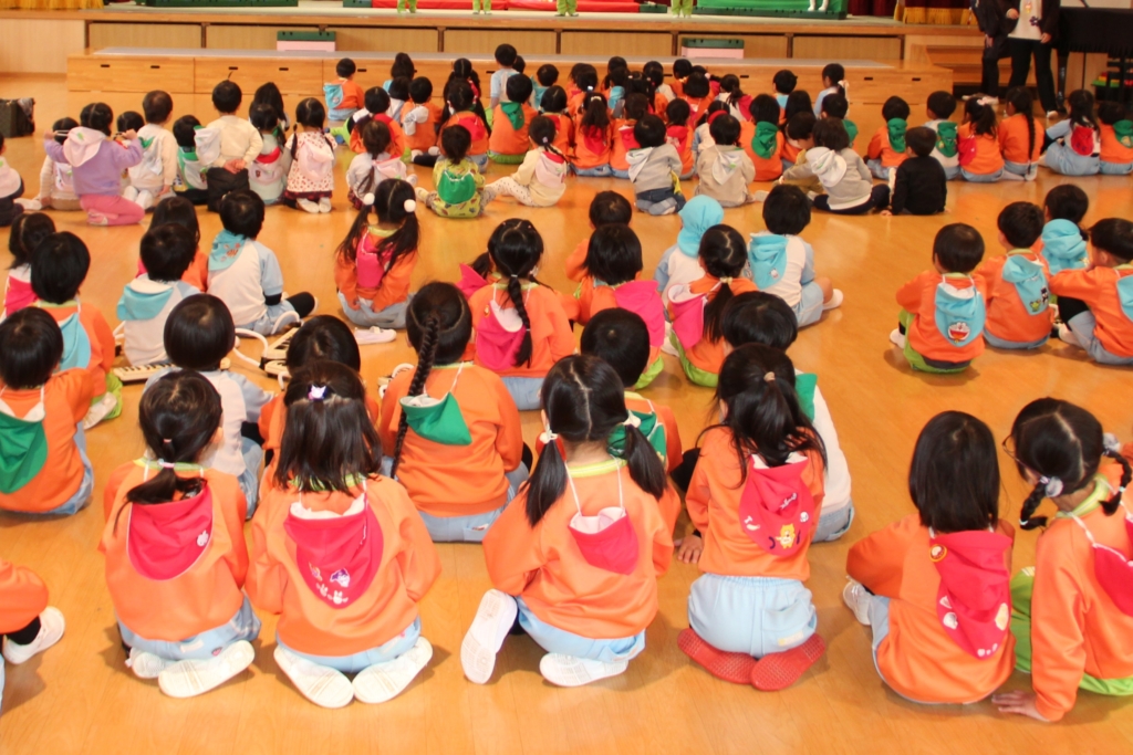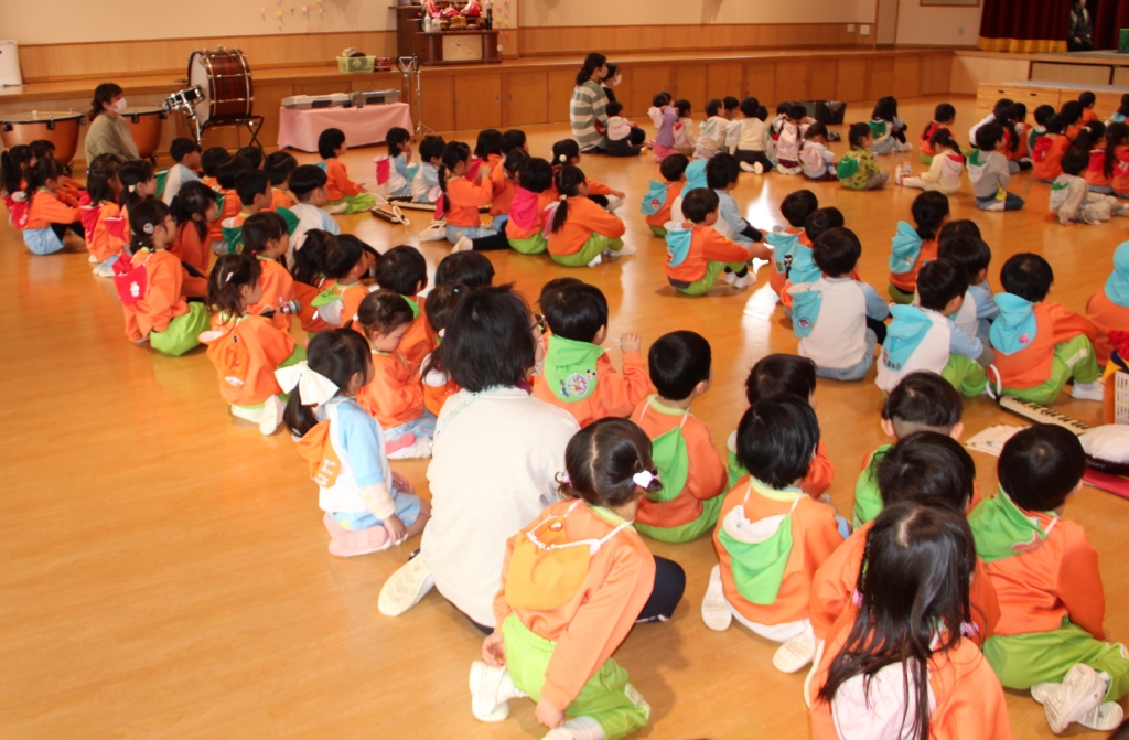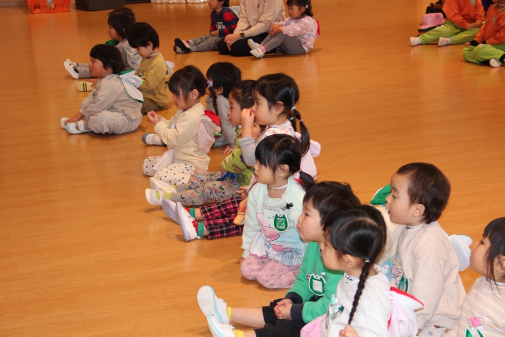 本番の様子を子どもたちは見ることができないので、次々と他のお部屋のお友だちが練習を見に来ています。