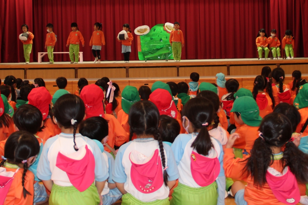 年長組さんの時もそうでしたが、感染症の流行を心配しながらの練習になりました。欠席するお友だちも多く、なかなかみんな揃っての練習ができないお部屋もありました。そんな中でも、子どもたちは精一杯自己表現をすることができました。