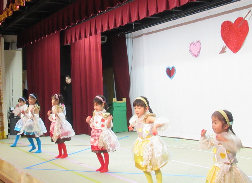 2月14日、午後からのお遊戯会も、たくさんの皆さんに来ていただいて、子どもたちは張り切って演技しました。