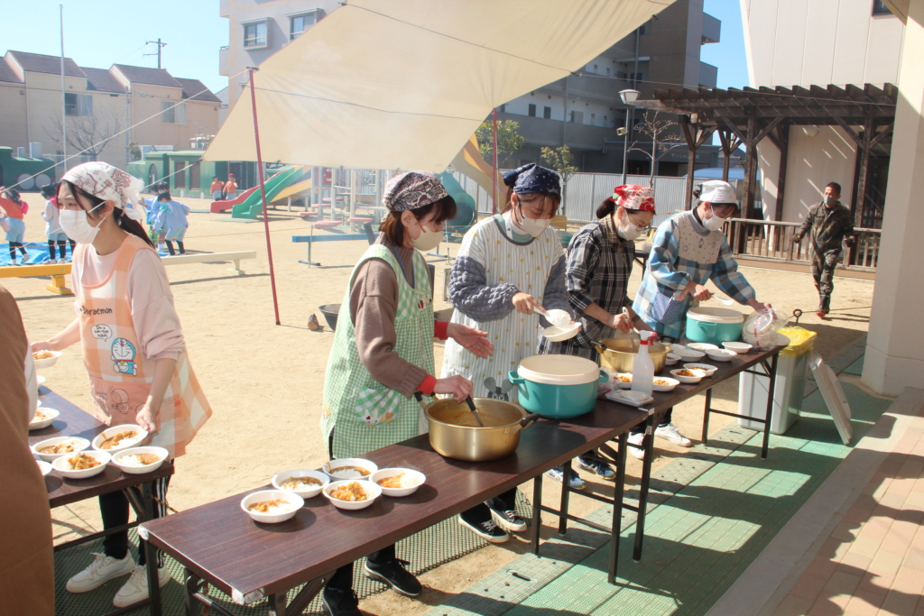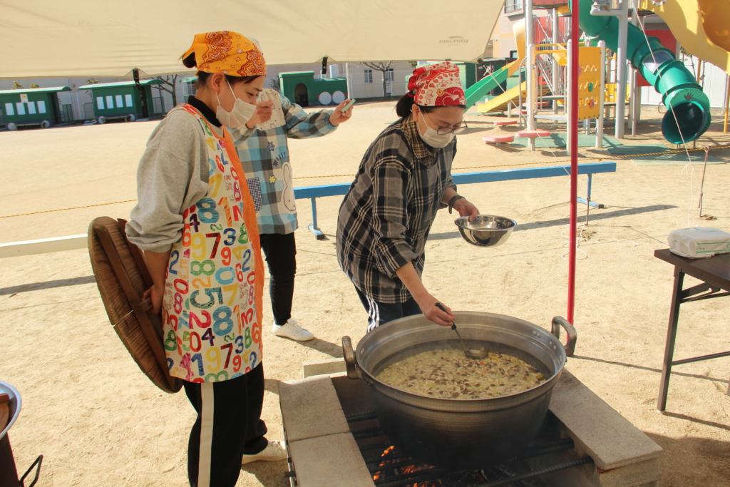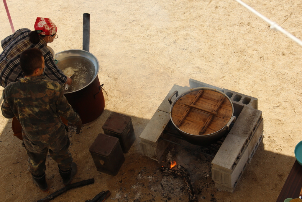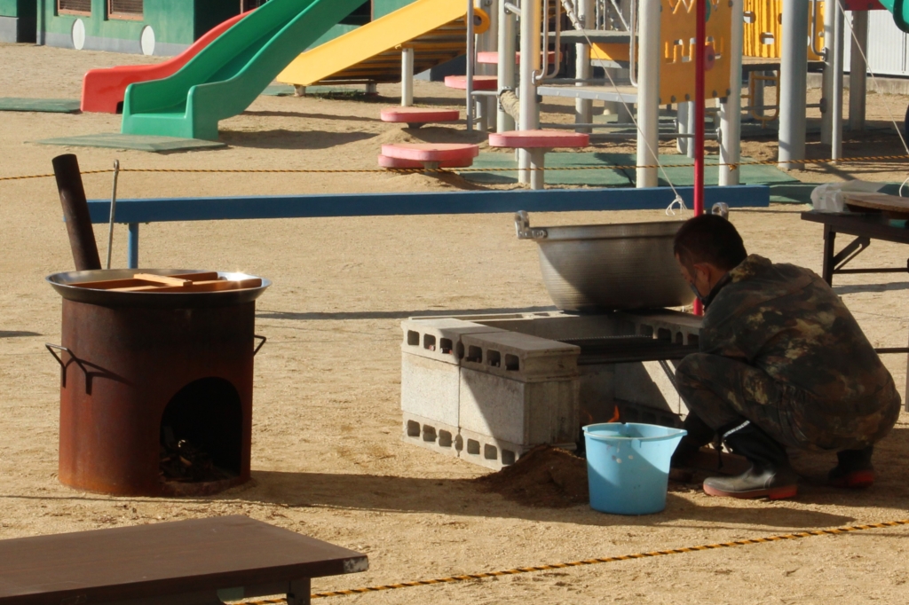 2月17日に、運動場で、炊き出しを行う訓練を行いました。