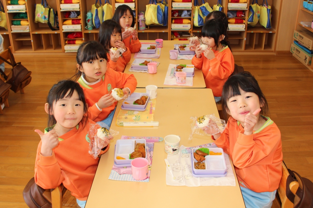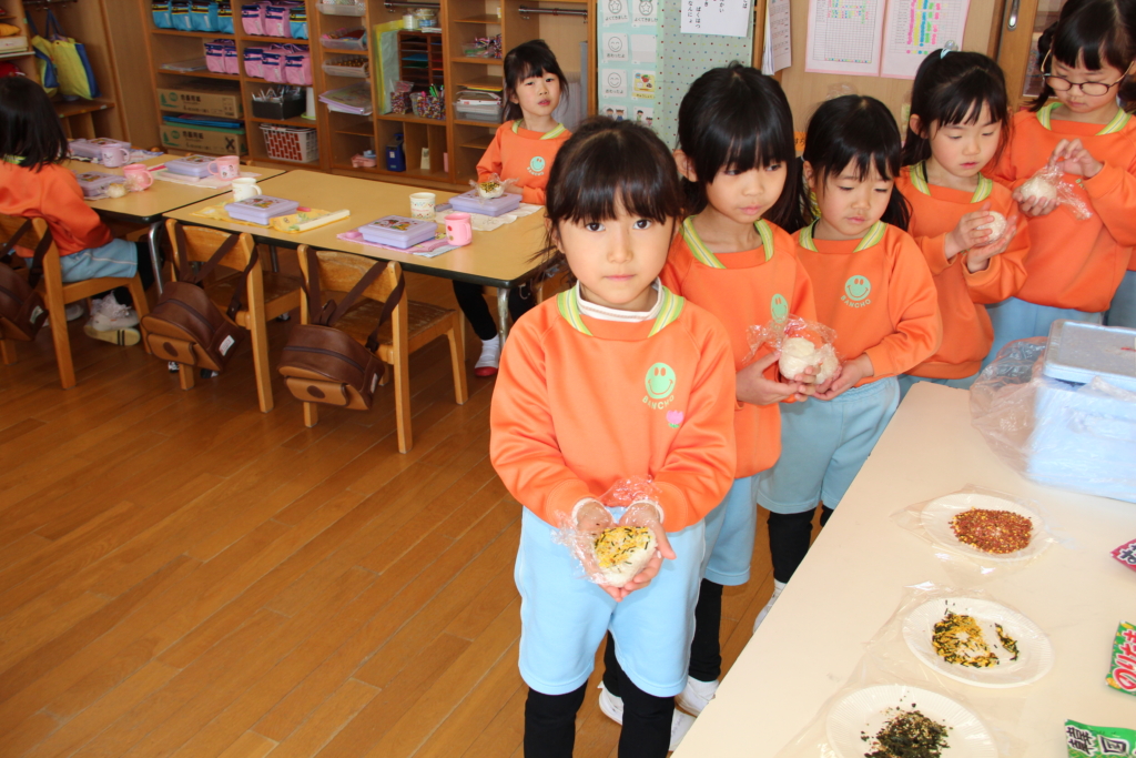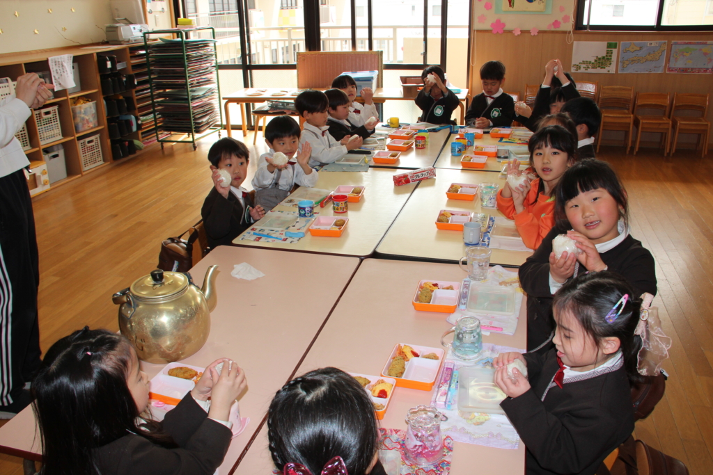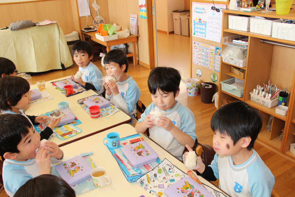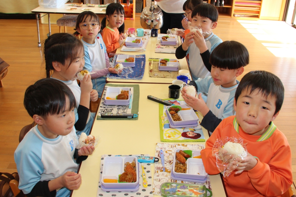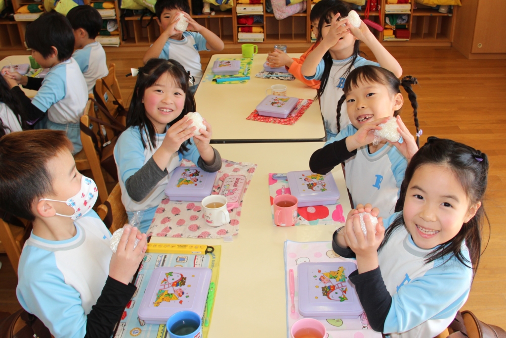 年長組の皆さん、おにぎりパーティー、卒園前のとってもいい思い出になってよかったね。