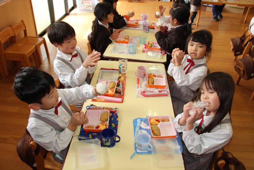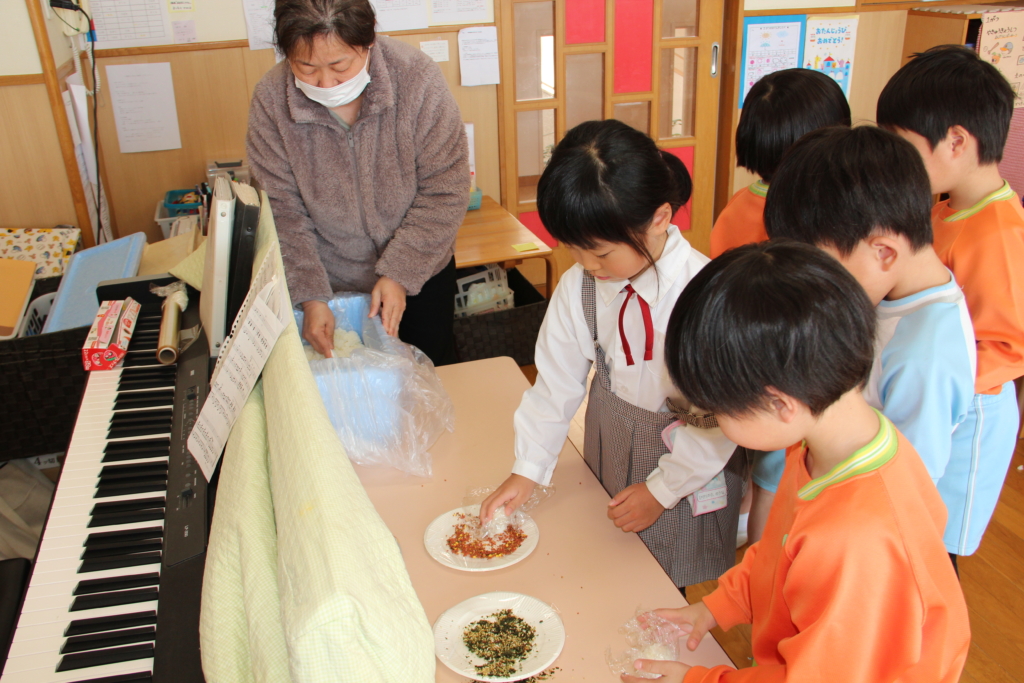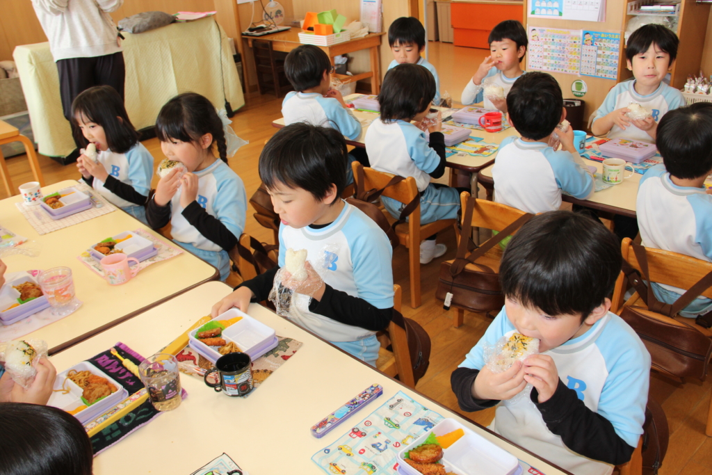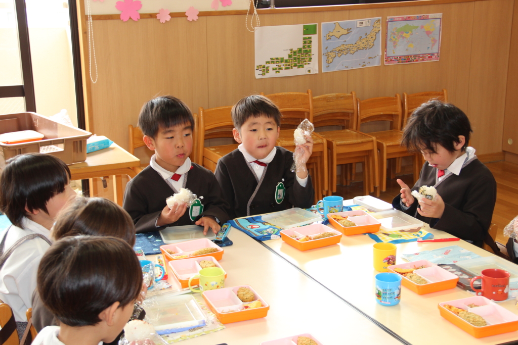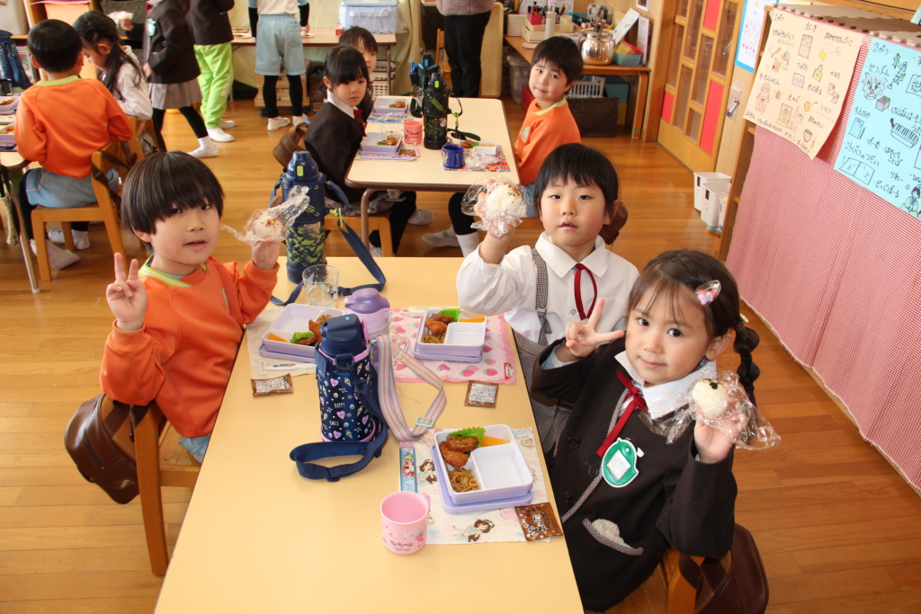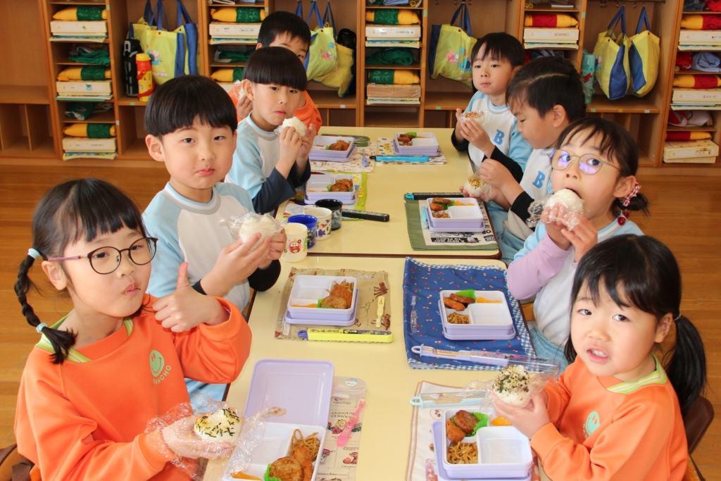 年長組の皆さん、おにぎりパーティー、卒園前のとってもいい思い出になってよかったね。