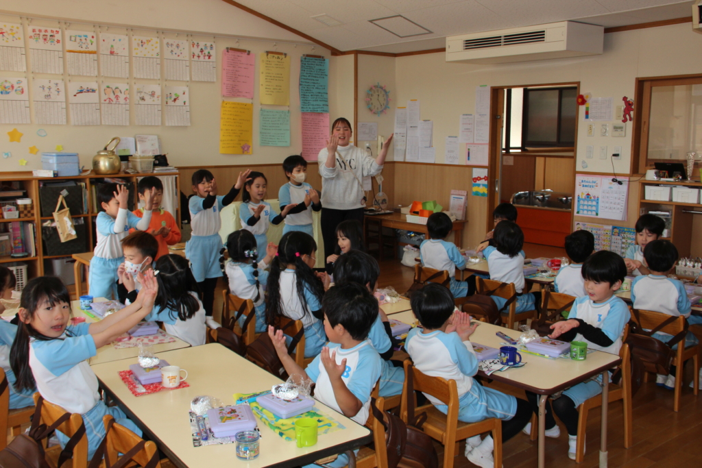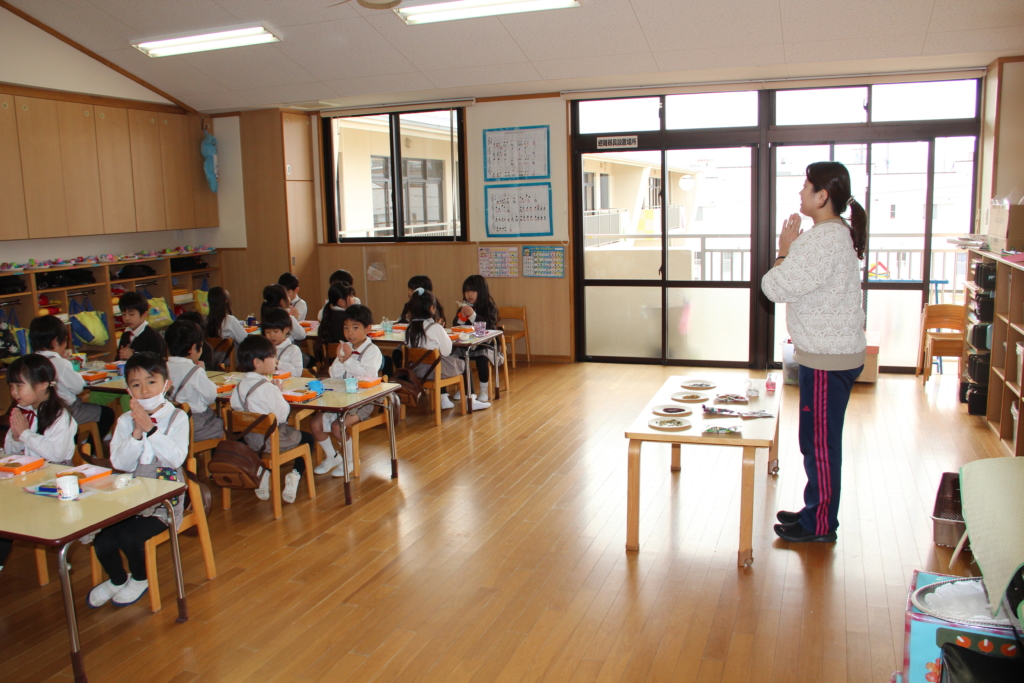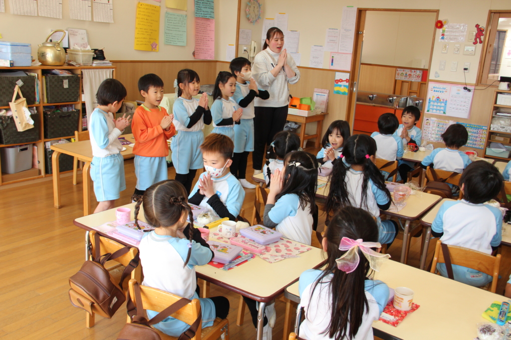 運んできてくれたお友だちに、みんなでお礼を言います。