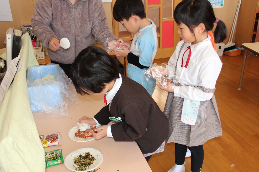 生まれて初めて、おにぎりを握ったというお友だちもたくさんいましたよ。
