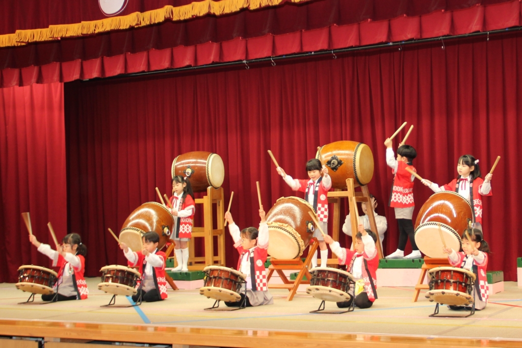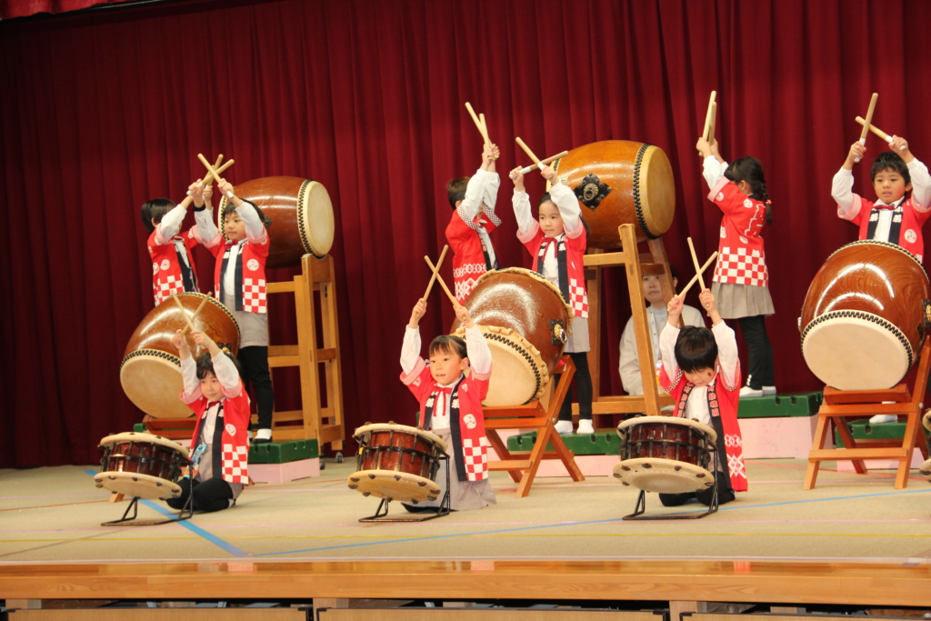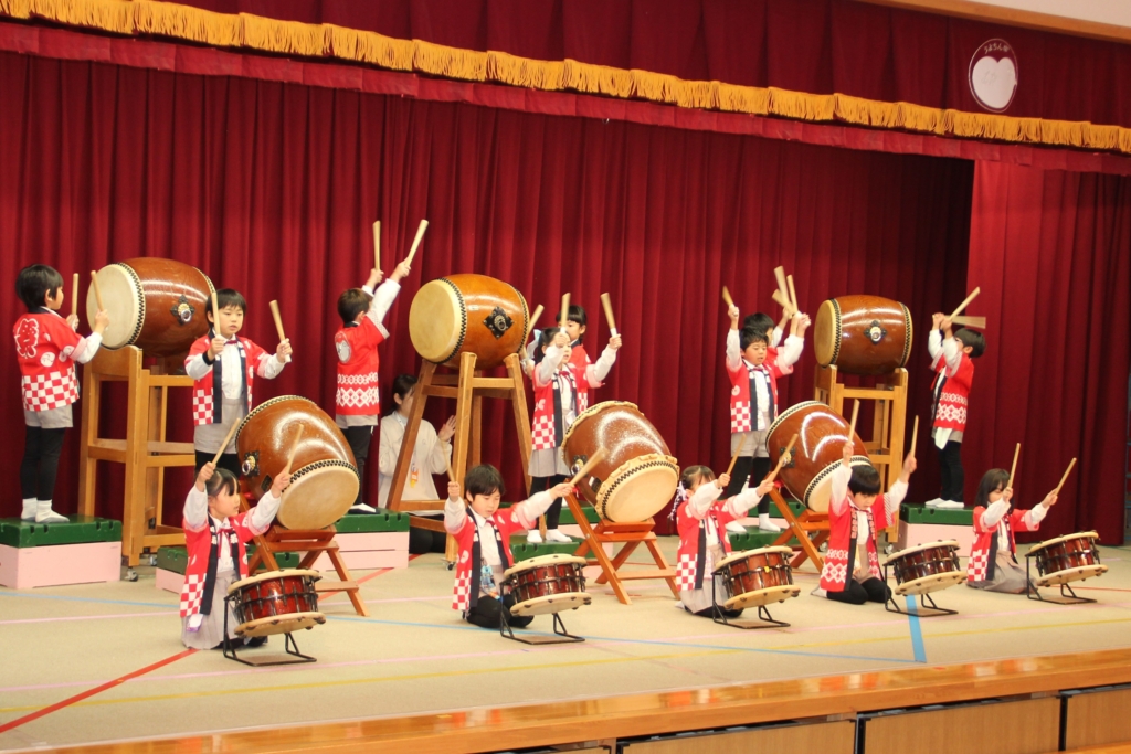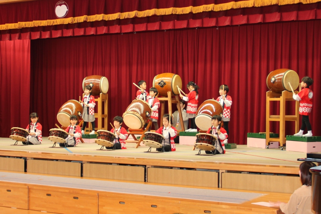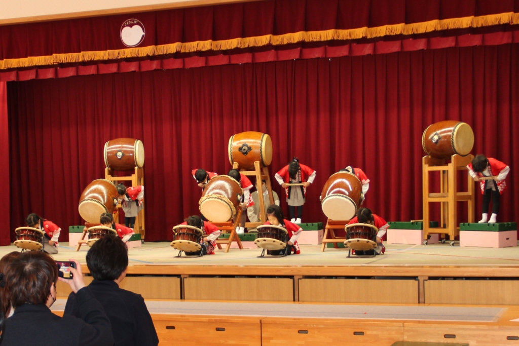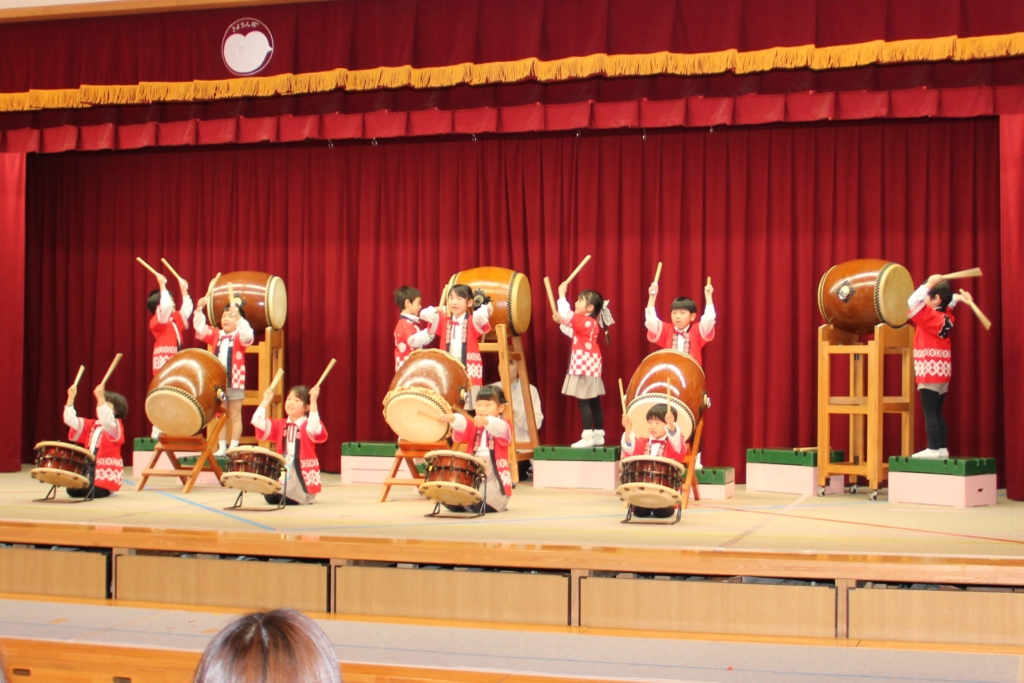 12月のお遊戯会で和太鼓をしなかった、うめ組、さくら組、つばき組は、今回の参観日で演奏を見ていただきました。