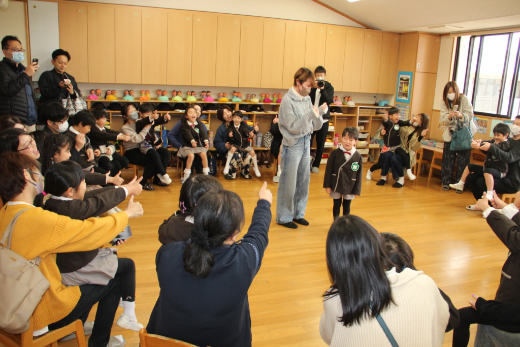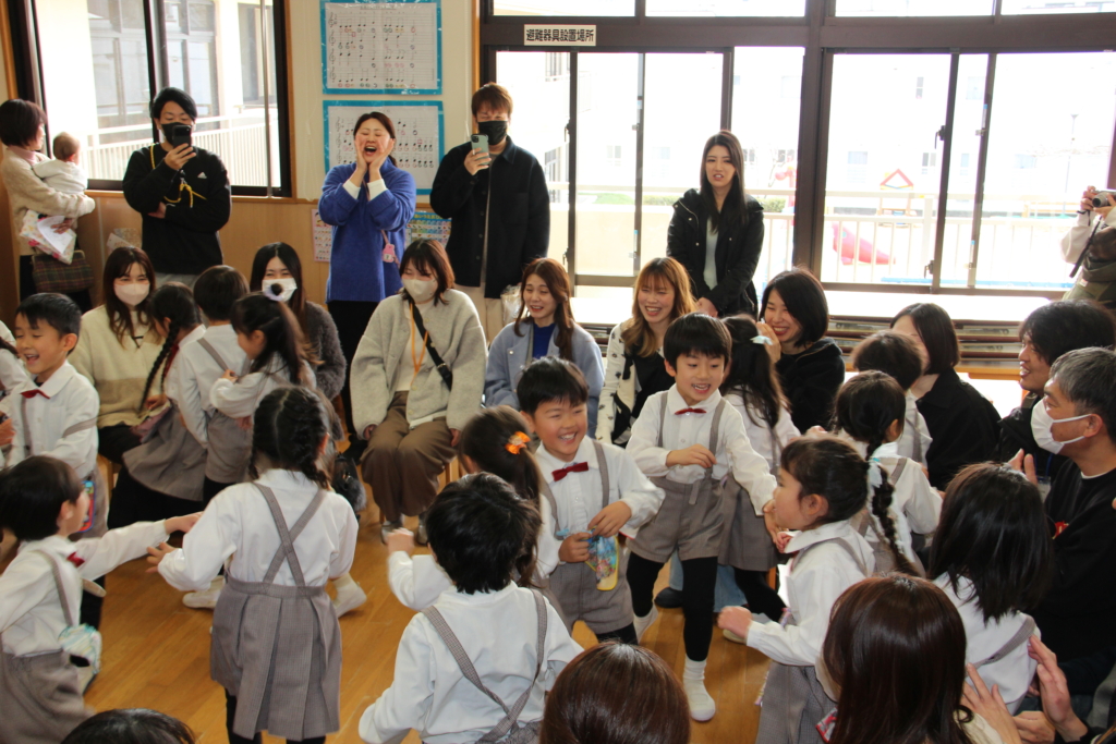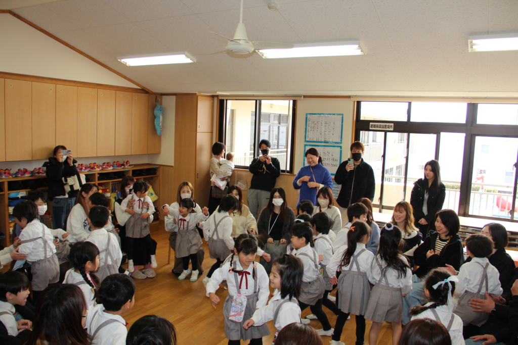 年長組の子どもたち、普段よりも気持ちが高ぶって、はしゃいでいたり、いつもより幼い顔を見せたりしていて、とてもかわいかったです。