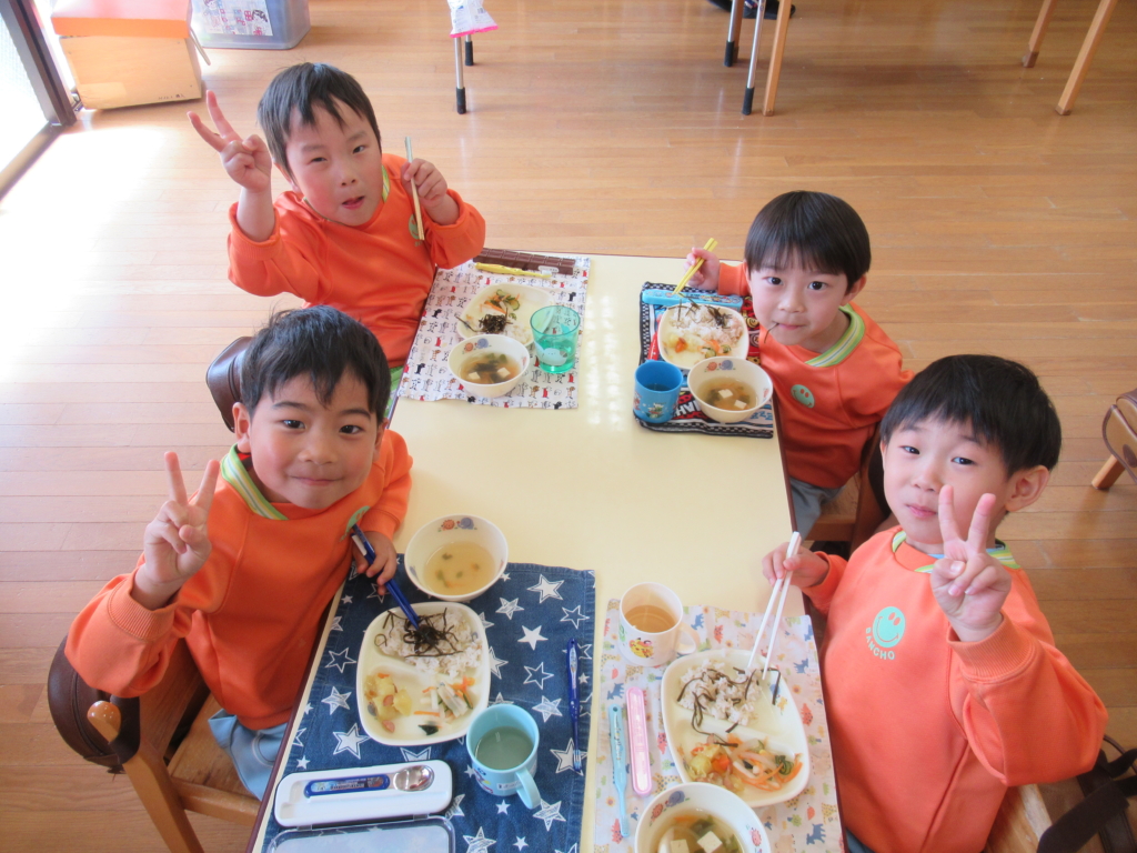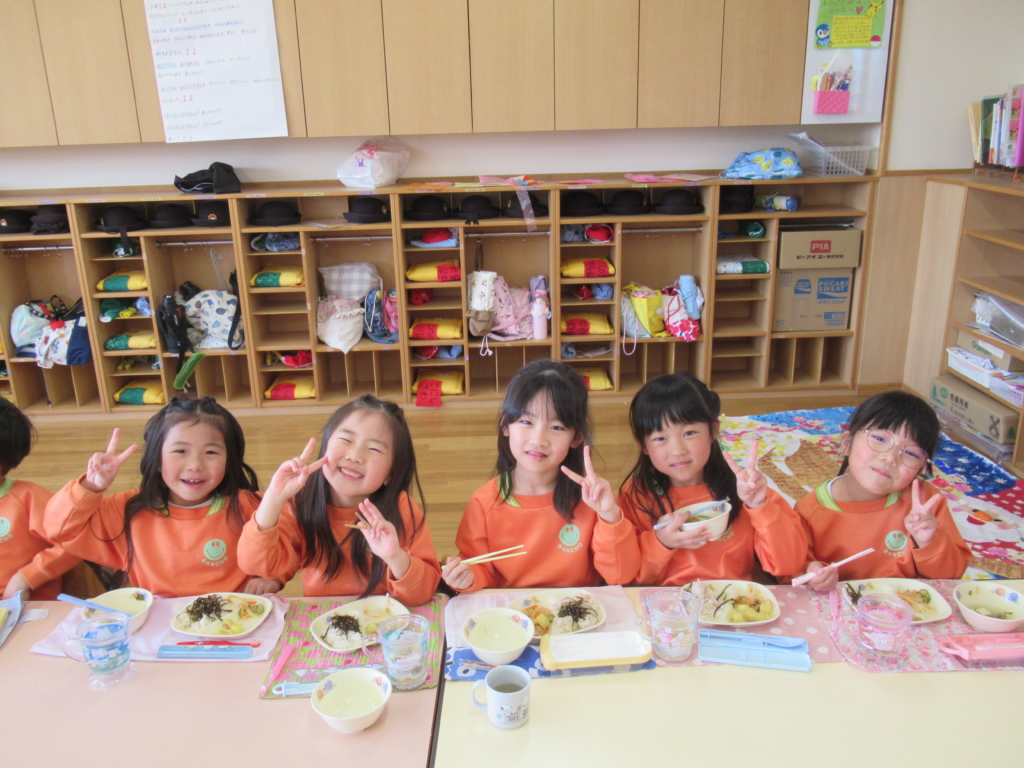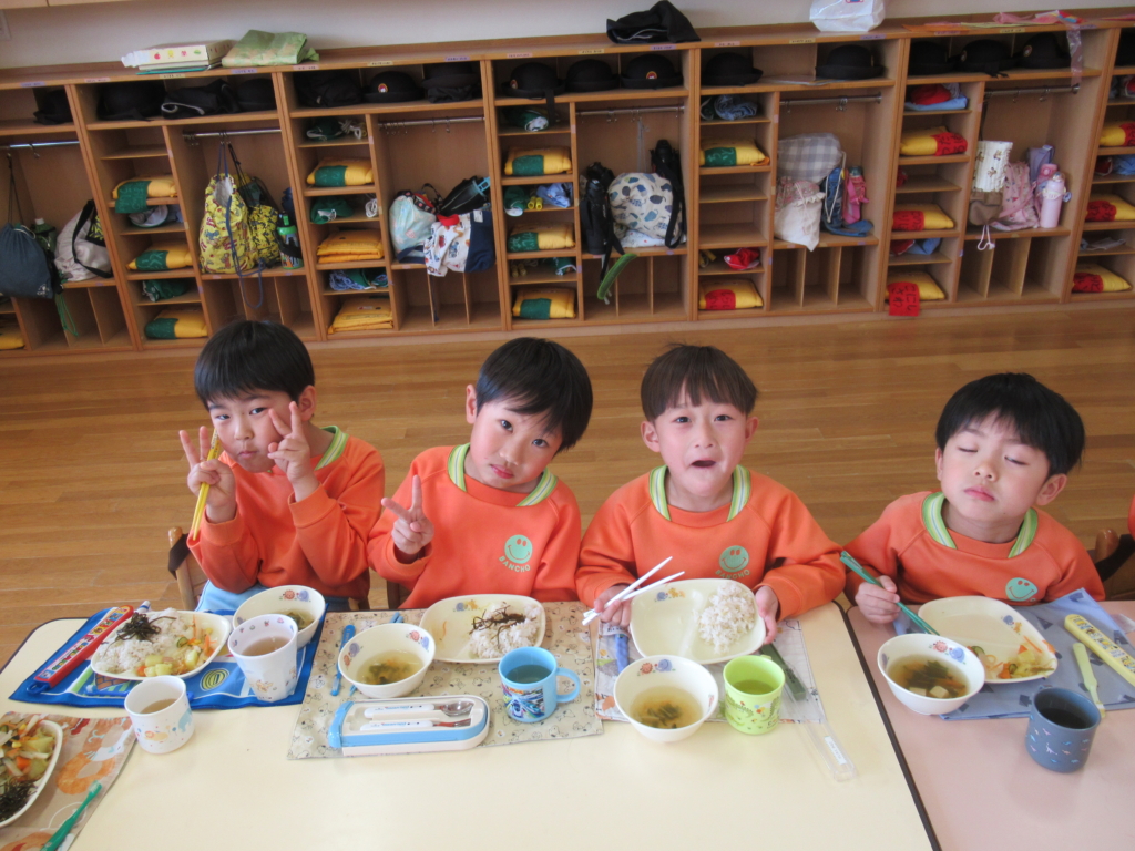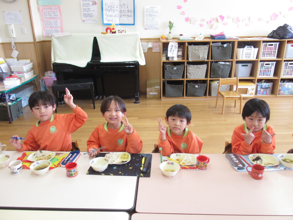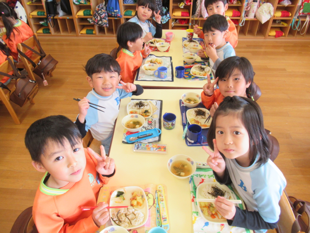 年長組最後の幼稚園での給食でした🥢