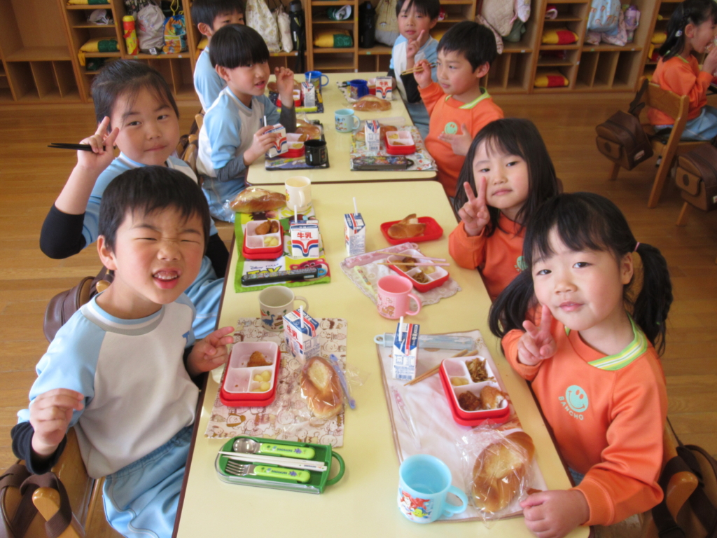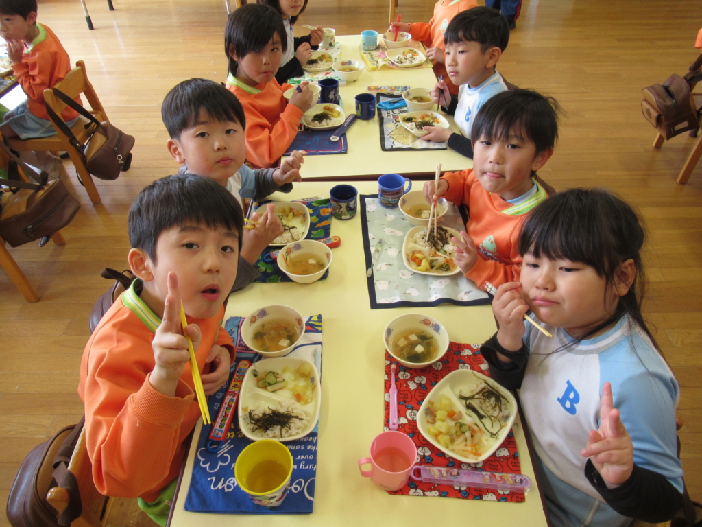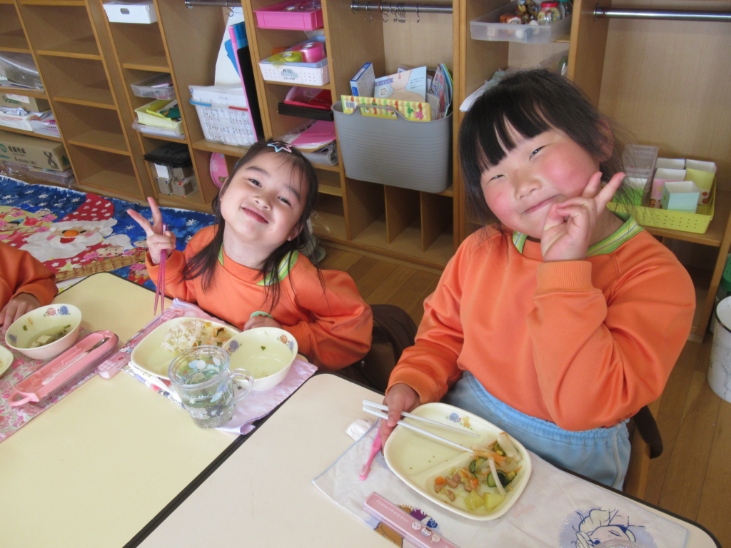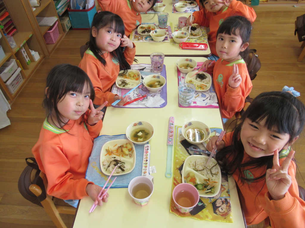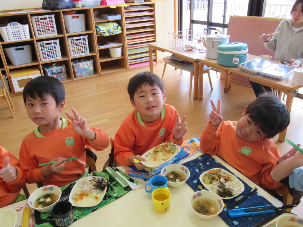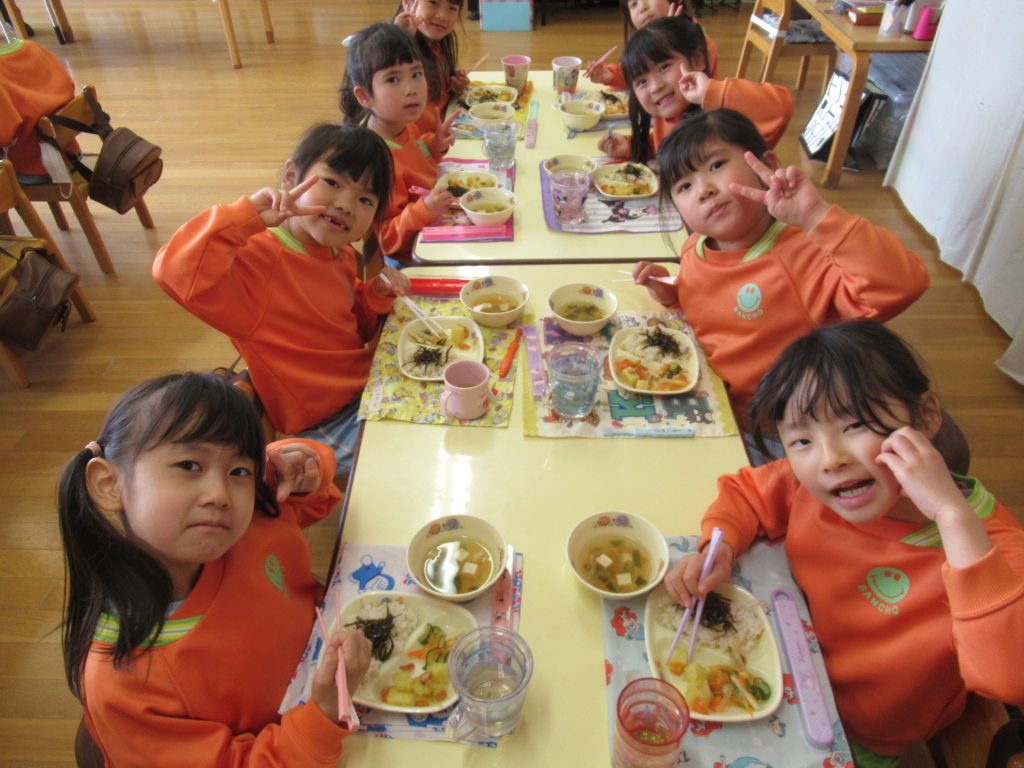 年長組最後の幼稚園での給食でした🥢