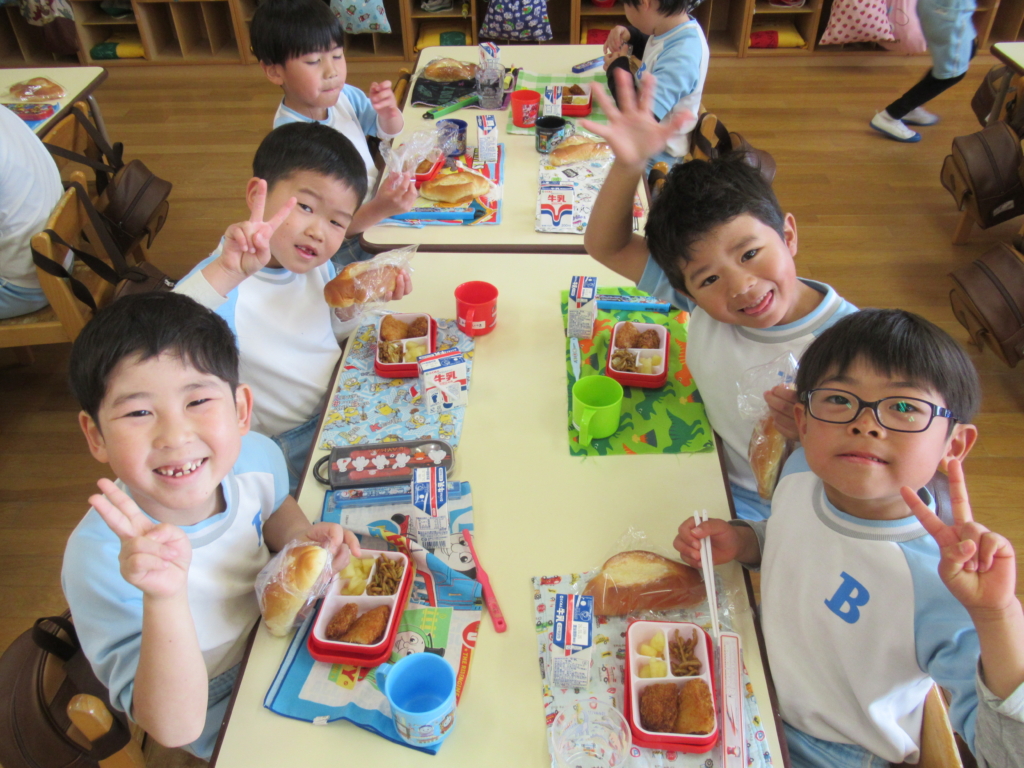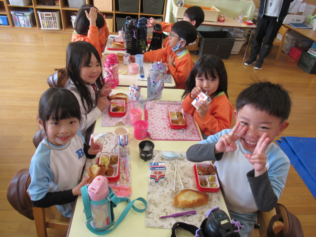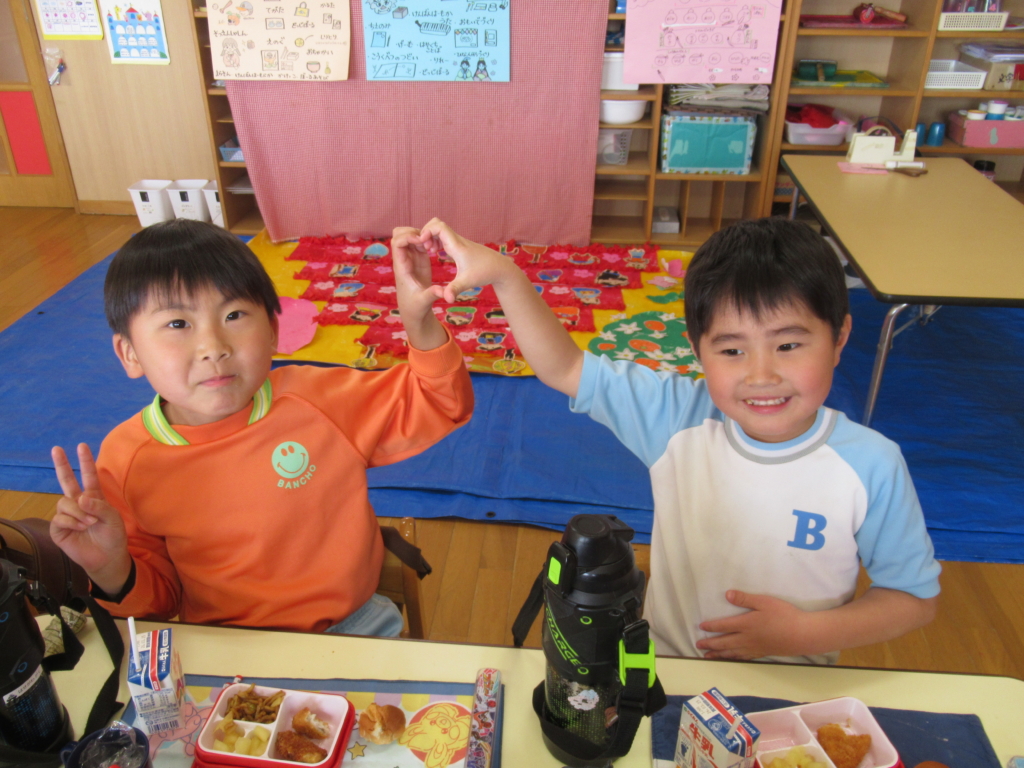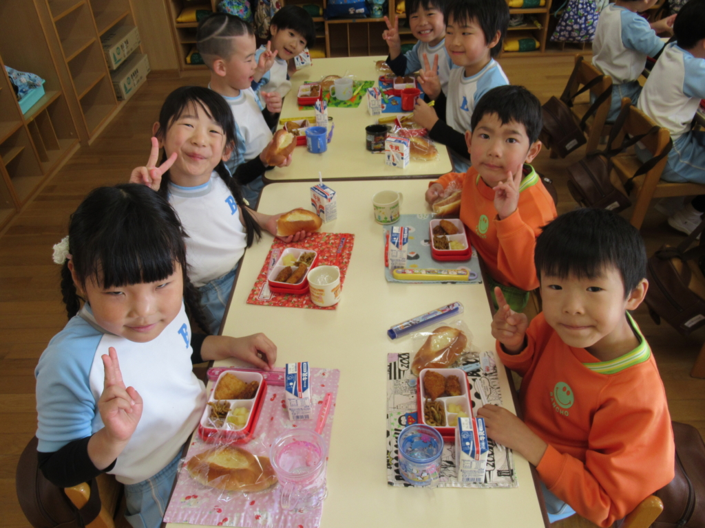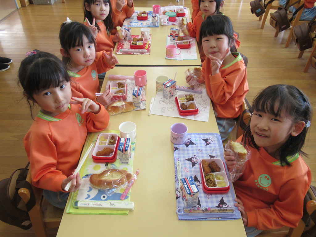 年長組最後の幼稚園での給食でした🥢