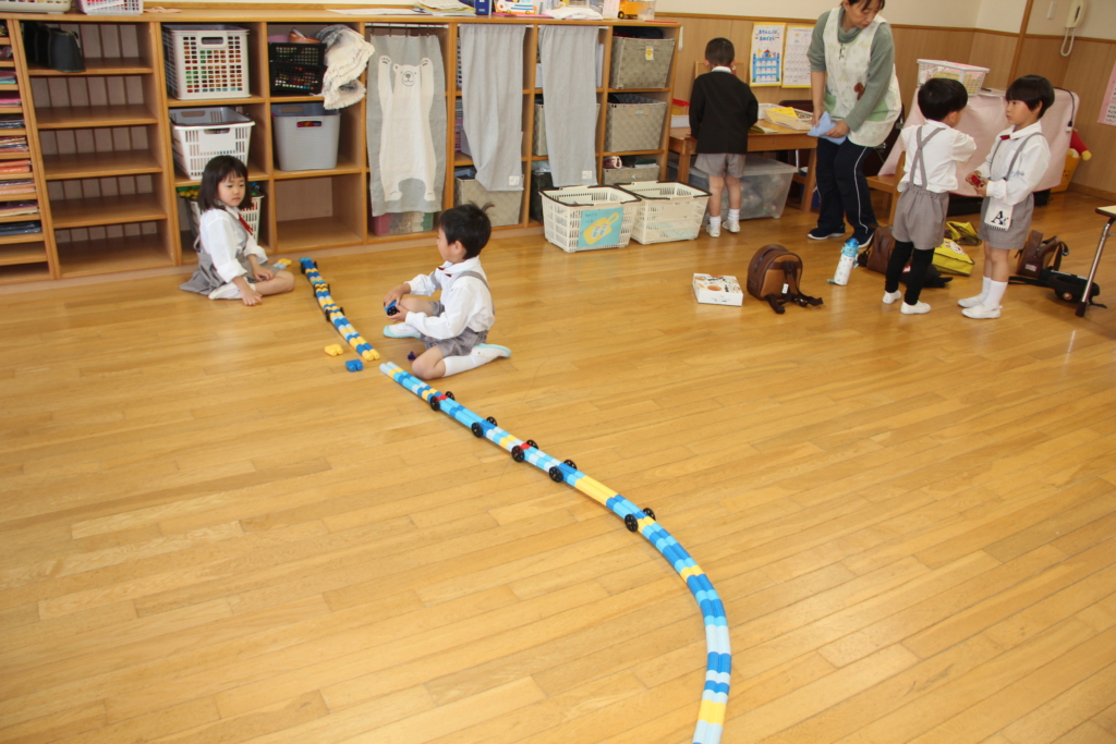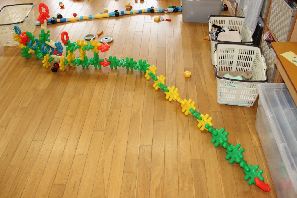 子どもたちは、ブロックを長~~~くつなぐのが、大好き