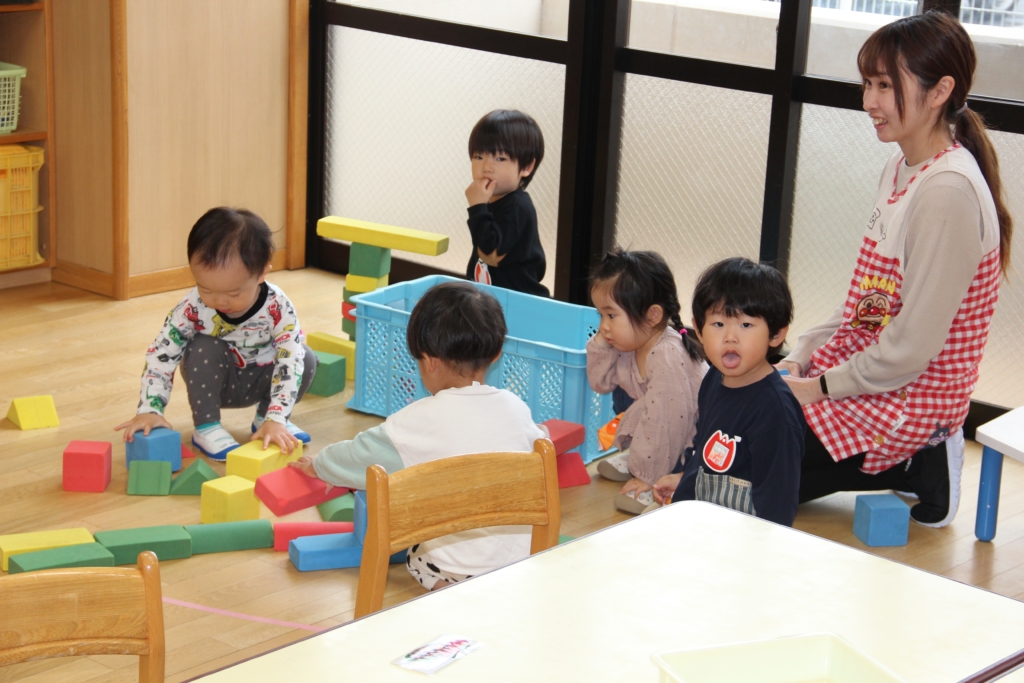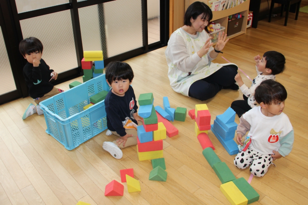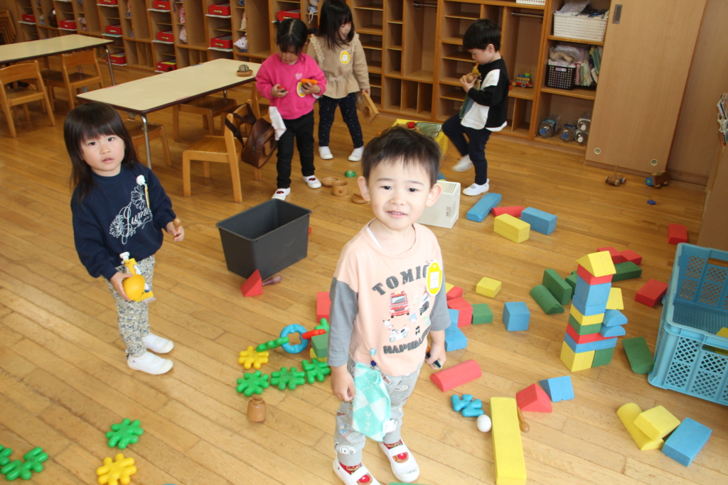 いろいろなおもちゃやブロックで遊ぶお友だちたち😉